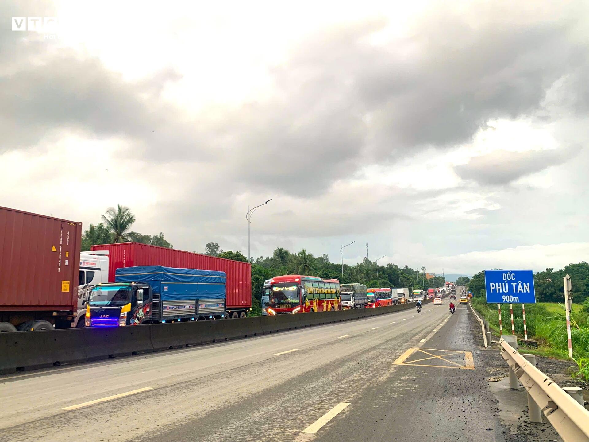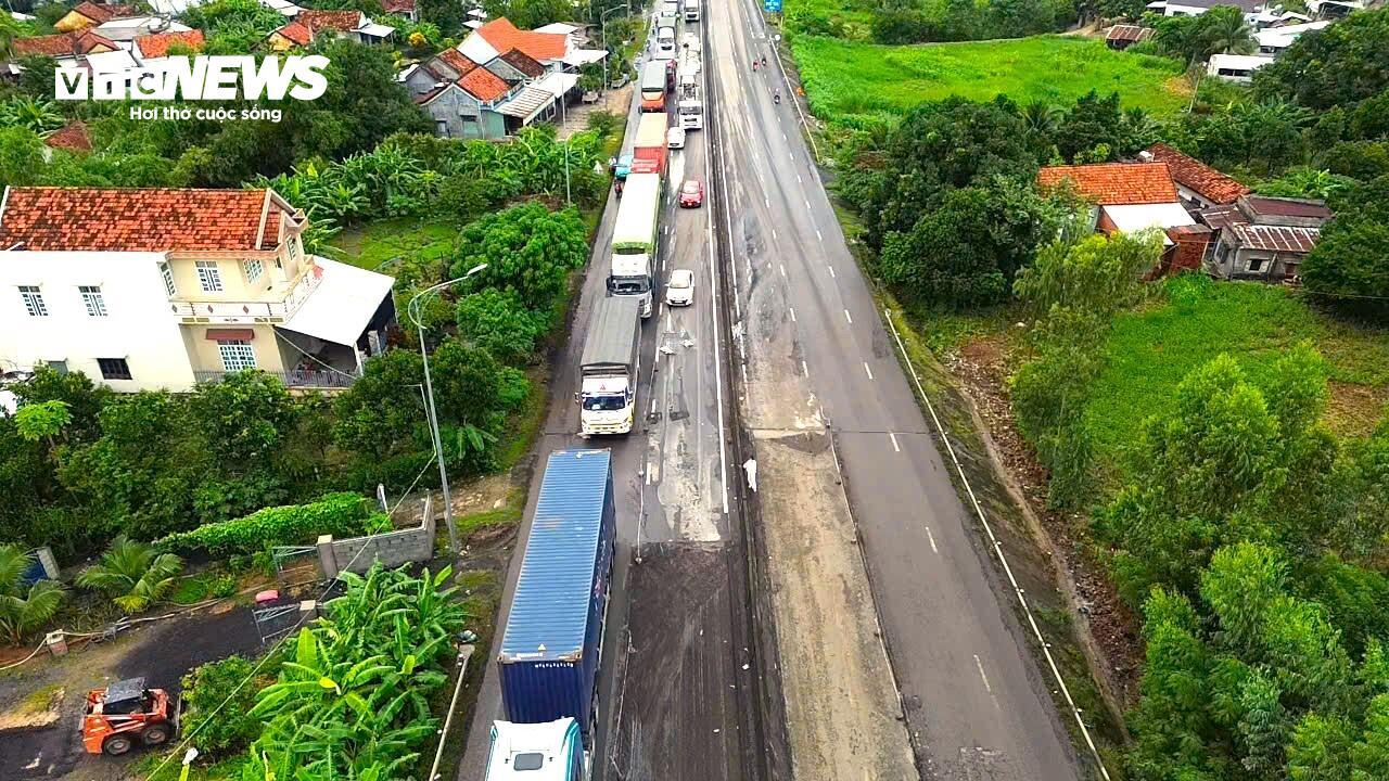 Ngoài ra, đoạn đường cào xới được rào lại cũng gây kẹt xe kéo dài.