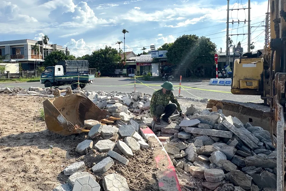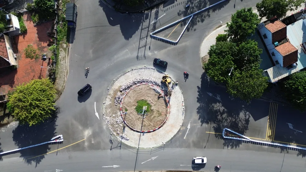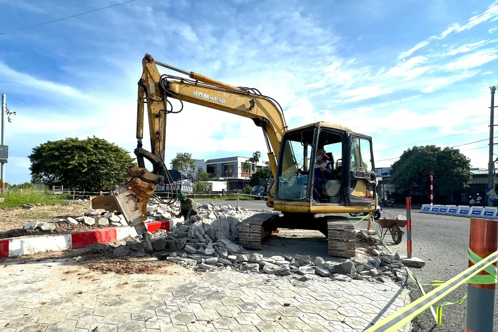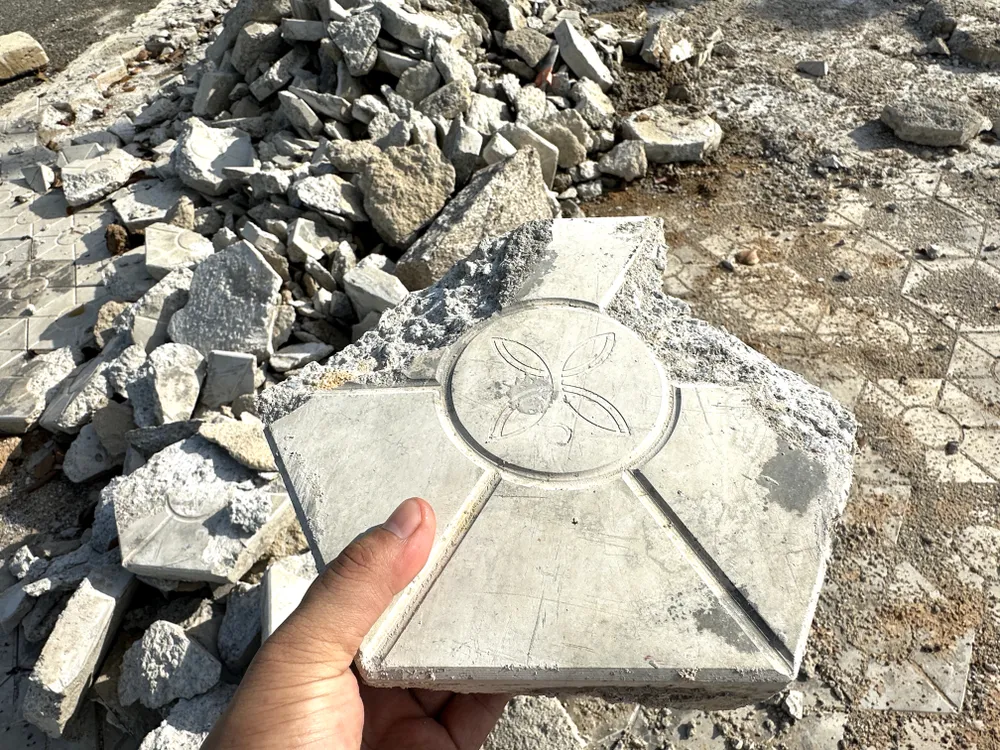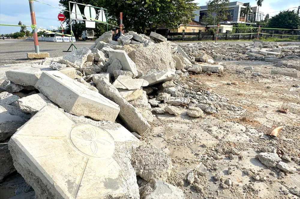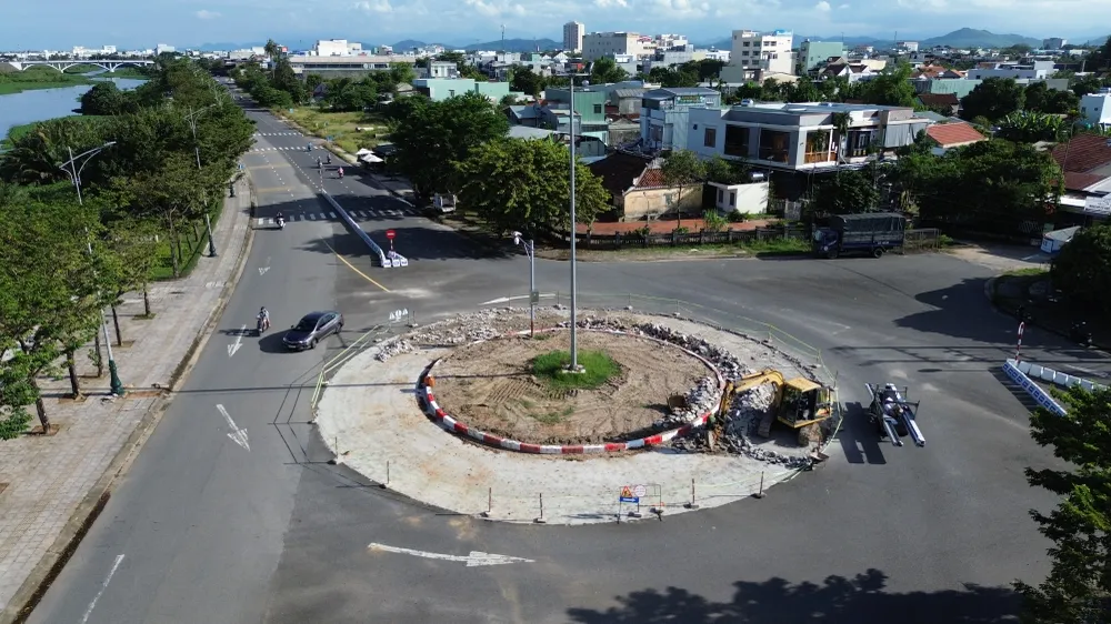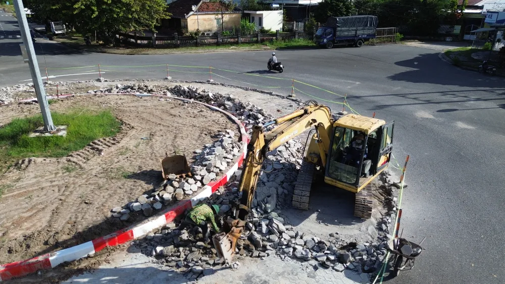 Phần gạch trong vòng xuyến sẽ được thay bằng vật liệu bê tông. Ảnh: TN