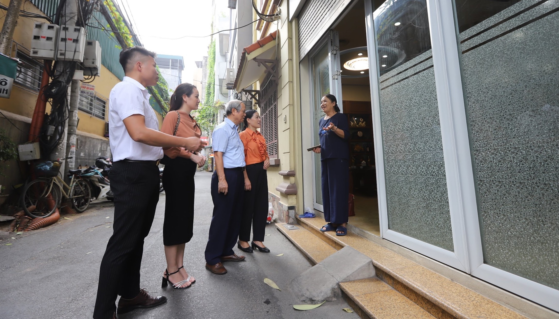 Thành viên tổ hòa giải phường Cầu Giấy vận động nhân dân giữ gìn trật tự, an ninh. Ảnh: Khánh Huy