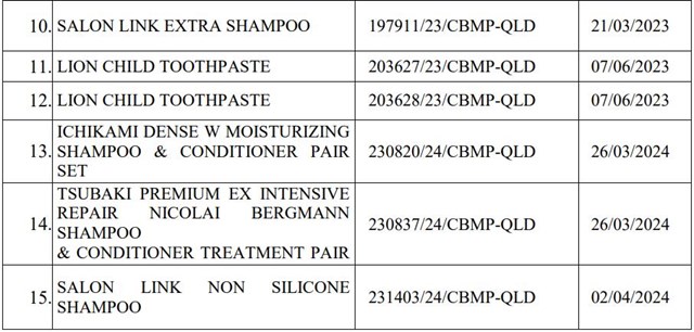 Đáng chú ý, trong danh mục sản phẩm bị buộc tiêu hủy có nhiều thương hiệu mỹ phẩm quen thuộc trên thị trường như Reihaku, Arau Baby, Kumano, Machérie, Hadabisei, Tsubaki, Salon Link, Lion..., bao gồm các sản phẩm như sữa rửa mặt, dầu gội, dầu xả, xà phòng và kem dưỡng.