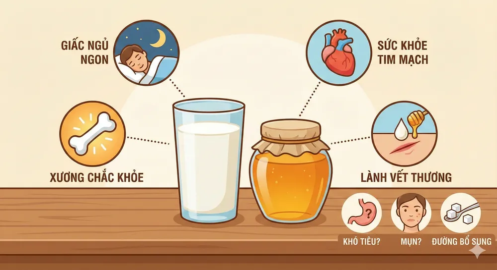 Sữa và mật ong đều giúp cơ thể nhận biết thời điểm nghỉ ngơi, nhưng tác dụng của chúng còn nhiều hơn thế. Dưới đây là những lợi ích và lưu ý khi sử dụng thức uống này.