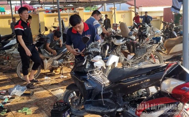 Cụ thể, ngày 12/10/2025, tại Trường Tiểu học - THCS Minh Tiến, xã Vân Nham, tỉnh Lạng Sơn, đoàn thiện nguyện với gần 60 thành viên Hội Kỹ thuật xe máy Hà Nội, Bắc Ninh, Hưng Yên, cùng gần 30 thợ sửa xe lành nghề thuộc Hội Kỹ thuật xe máy Lạng Sơn đã tập trung để sửa chữa, bảo dưỡng xe máy, xe đạp điện miễn phí cho người dân vùng lũ. Các thành viên trong đoàn mang theo đầy đủ dụng cụ chuyên dụng và phụ tùng xe, sẵn sàng giúp đỡ bà con khắc phục hậu quả. Hàng trăm phương tiện hư hỏng đã được người dân đưa đến điểm sửa chữa tập trung ngay trong khuôn viên trường học.