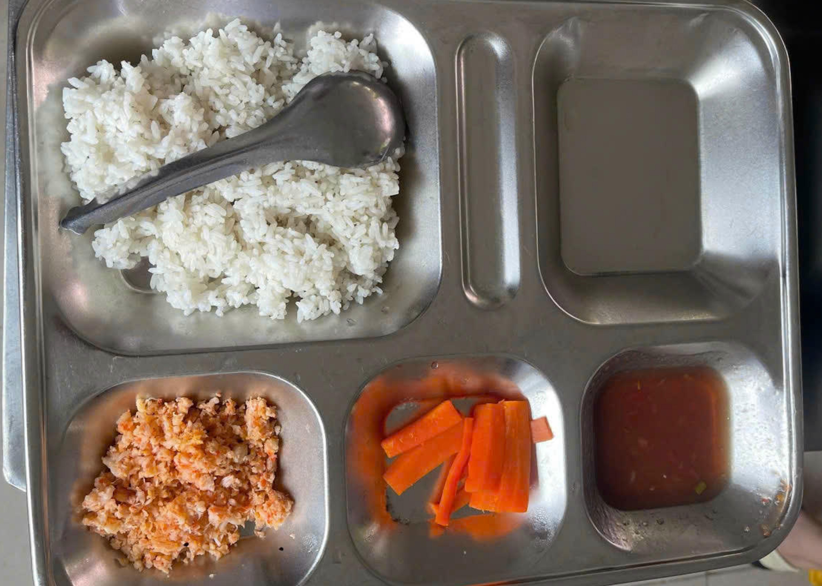 Trước đó, ngày 9/10, một phụ huynh có con học khối 4 tại trường Tiểu học Phú Cát đăng hình ảnh bữa cơm bán trú của học sinh lên trang Facebook cá nhân, phản ánh suất ăn “lèo tèo” với tôm chấy và cà rốt luộc.