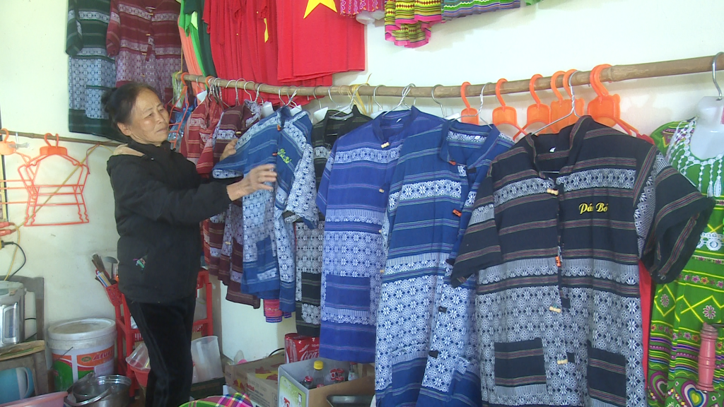 Ki ốt bà Lô Thị Hính tại Khu di tích Quốc gia đặc biệt Pác Bó hiện bán đa dạng các mặt hàng quần áo, đồ lưu niệm, sản phẩm đạt OCOP của địa phương.