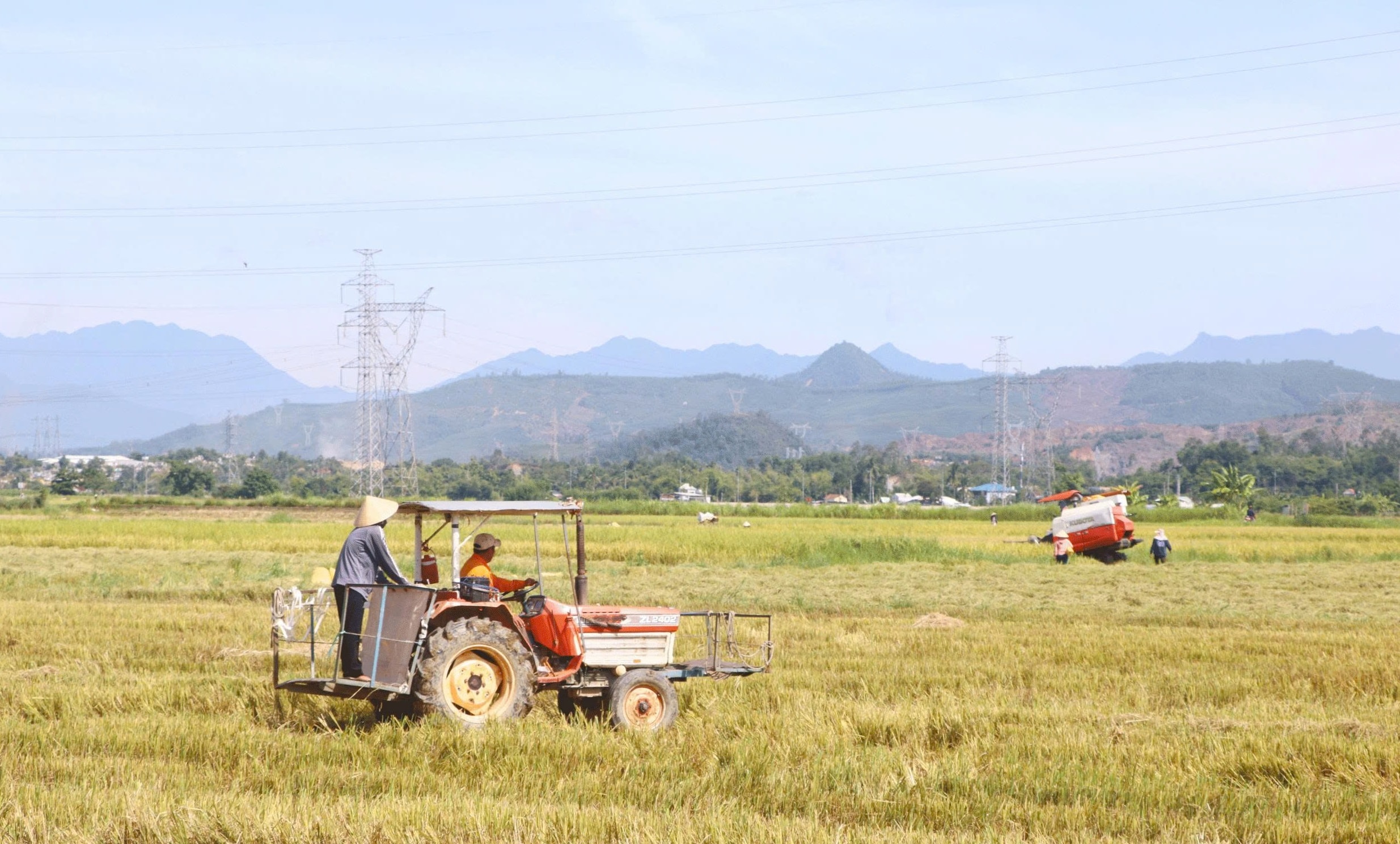 HTX Dịch vụ sản xuất và Kinh doanh tổng hợp Hòa Tiến 1 thu hoạch lúa. Ảnh: V.H
