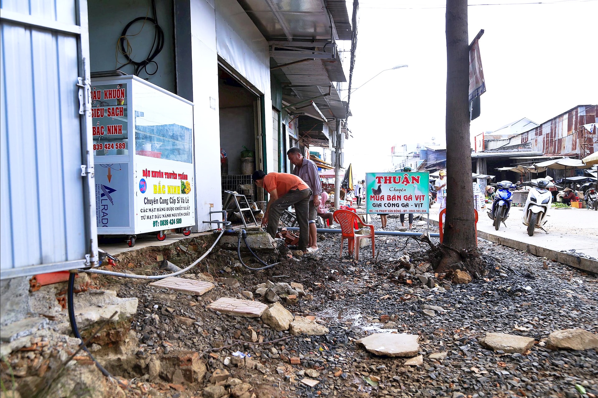 Một trục đường trung tâm chợ Cư Jút được mở rộng nhờ sức dân