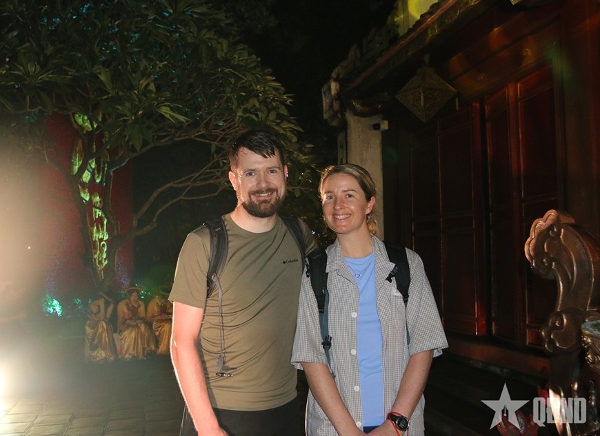 Du khách quốc tế thích thú với tour đêm tại đền Ngọc Sơn.