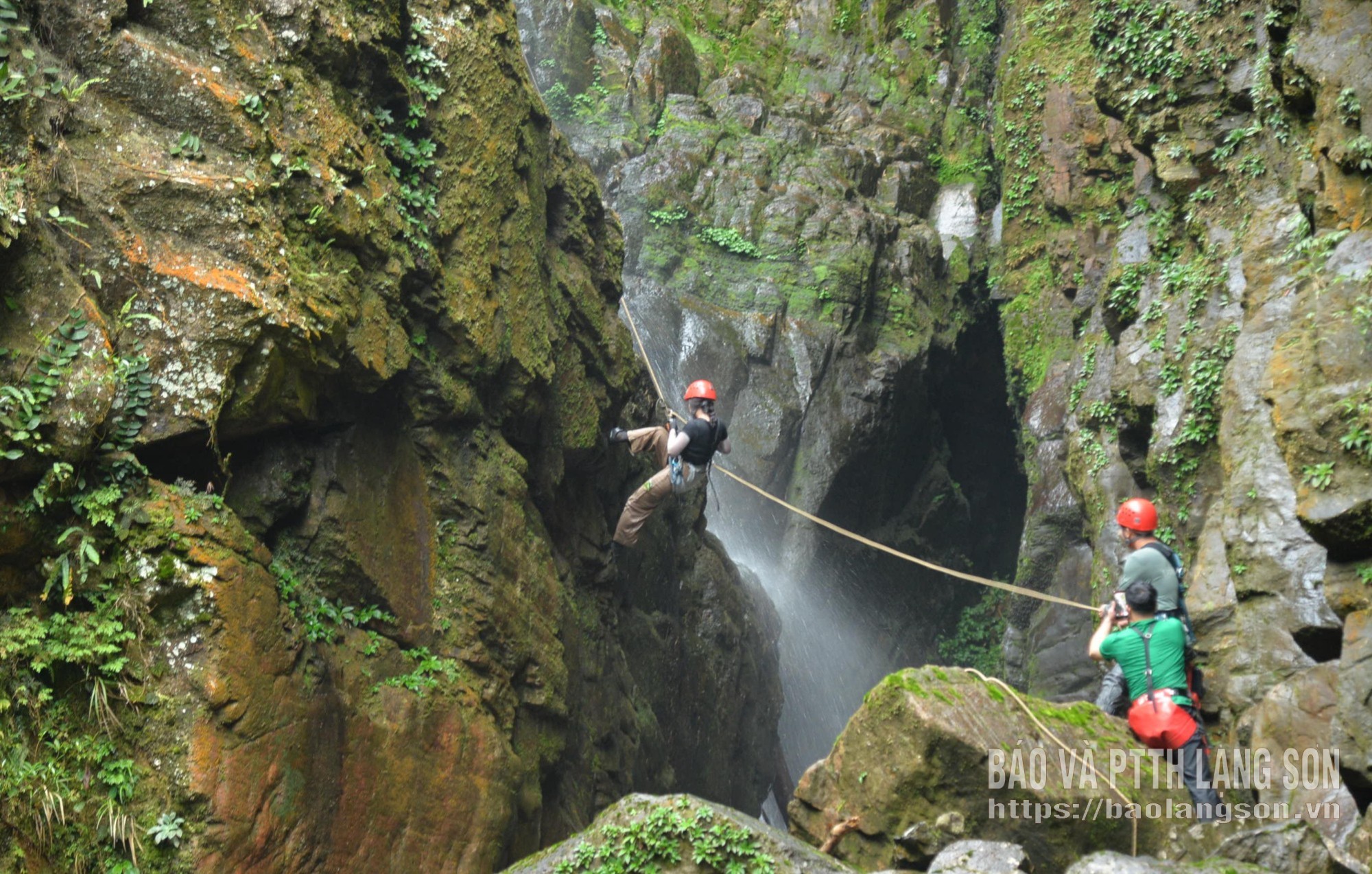 Du khách trải nghiệm hoạt động vượt thác Bay, xã Mẫu Sơn