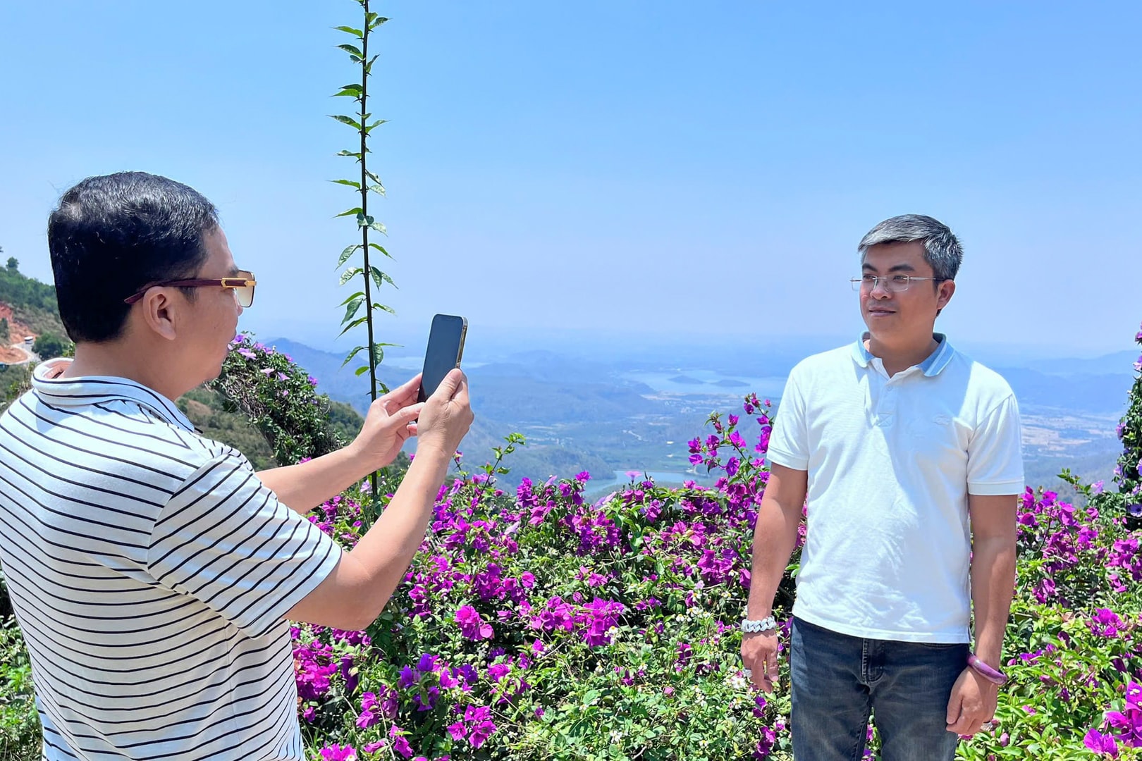 Du khách thích thú chụp ảnh lưu niệm khu vực đèo Đại Ninh