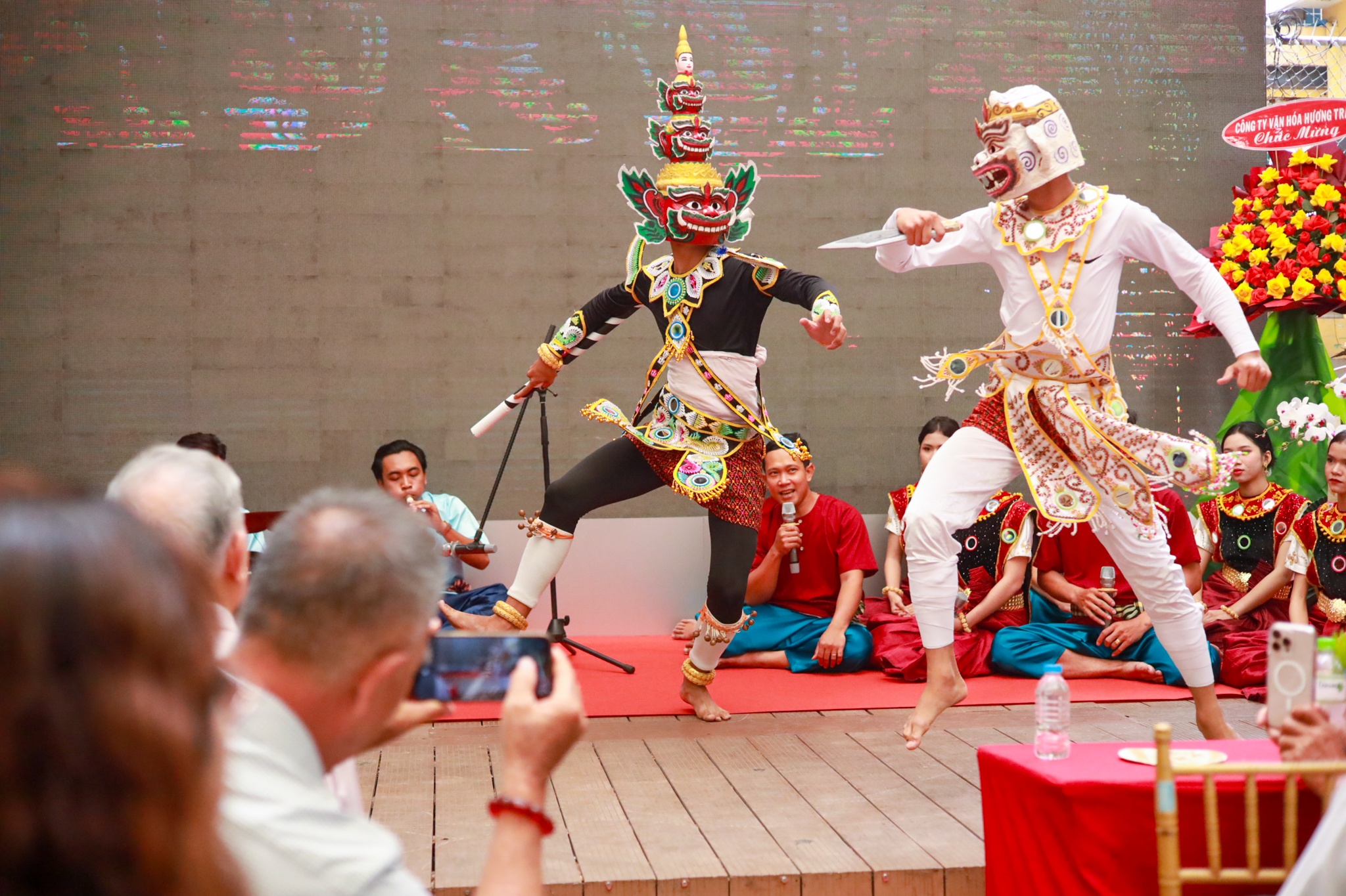 Điệu múa truyền thống của người Khmer trong lễ khai mạc dự án Tủ sách cho ĐBSCL. Ảnh: Đức An.