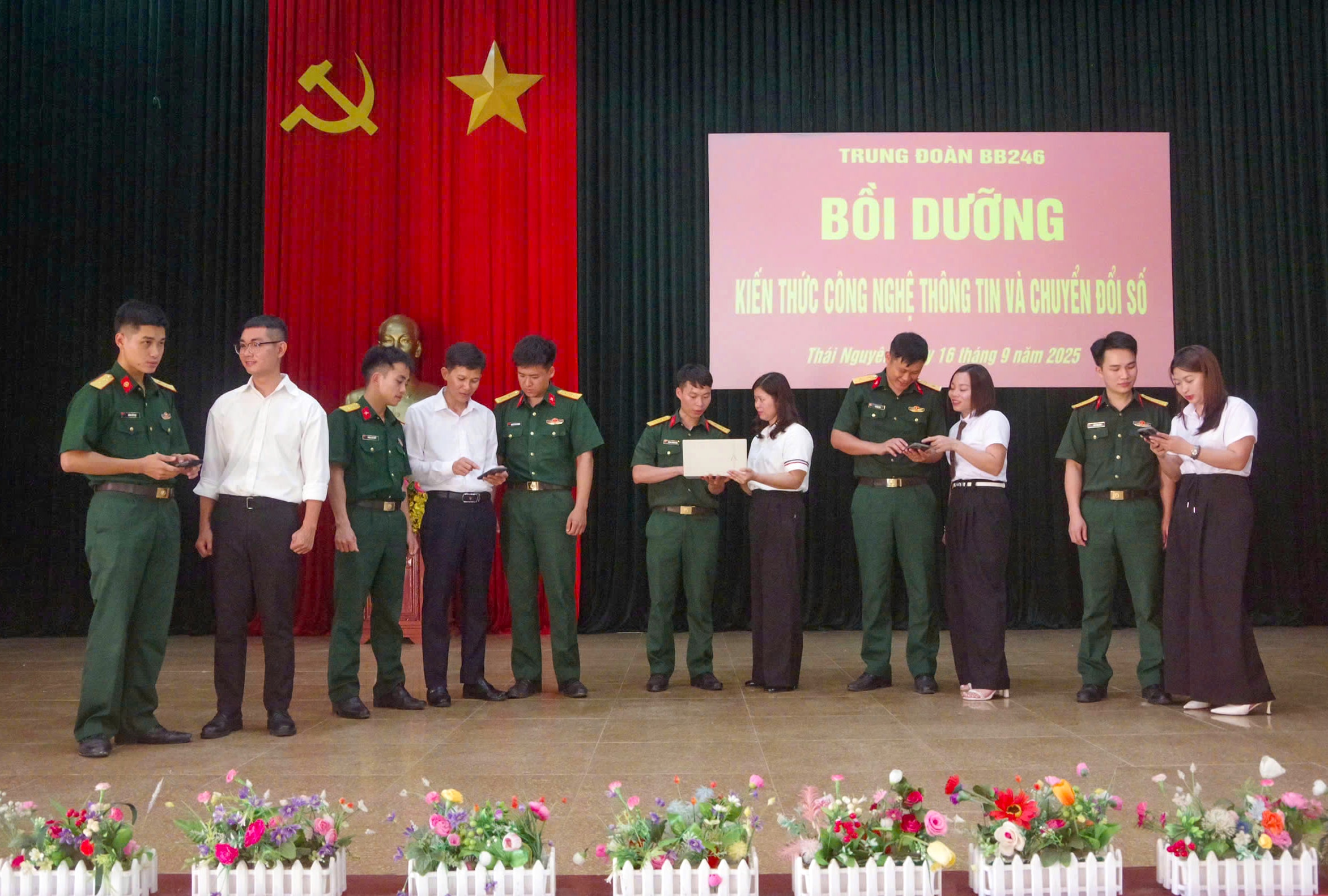 Trung đoàn 246, Sư đoàn 346, Quân khu 1 phối hợp cùng Trường phổ thông trung học Tức Tranh (Phú Lương, Thái Nguyên) tổ chức lớp bồi dưỡng kiến thức công nghệ thông tin và chuyển đổi số cho cán bộ, chiến sĩ đơn vị.