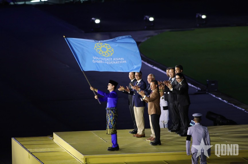 Sau nghi thức tắt đuốc và hạ cờ được cử hành trang trọng, Ban tổ chức SEA Games 33 trao lại cờ đăng cai tới đại diện Malaysia-quốc gia sẽ tổ chức SEA Games 34-năm 2027.