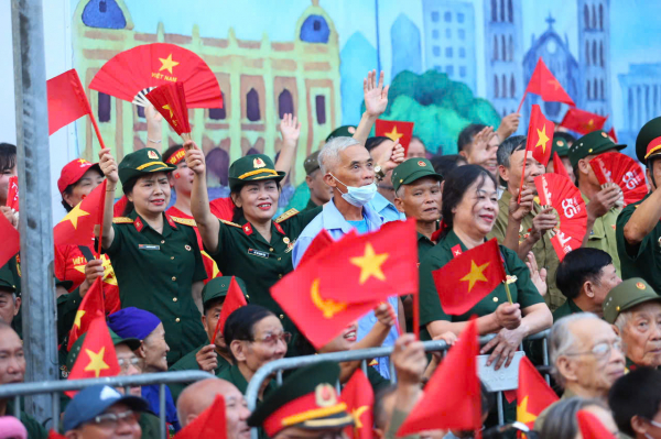 Người dân Thủ đô Hà Nội chào đón các lực lượng tham gia diễu binh, diễu hành dịp lễ 30/4/2025 - Ảnh: Nguyễn Bình