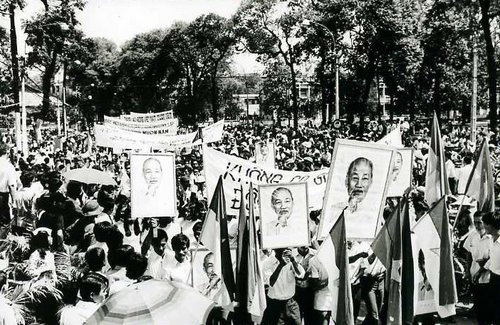 Đông đảo các tầng lớp nhân dân Sài Gòn tham dự mít tinh mừng chiến thắng.