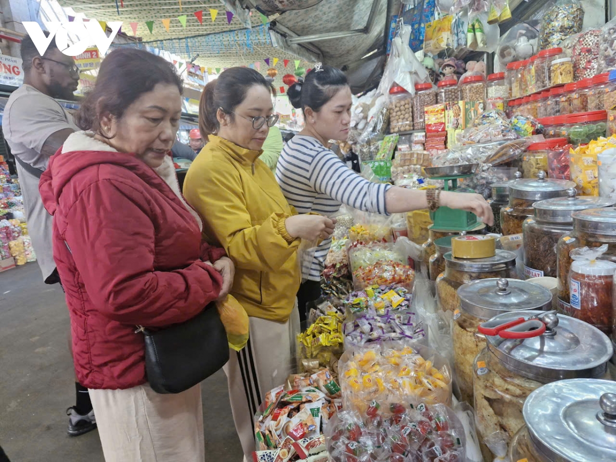 Bà Trần Thị Thu, hộ kinh doanh bánh kẹo tại chợ Cồn, thành phố Đà Nẵng cho biết, lượng người đến chợ mua sắm tăng khoảng 30% so với thời điểm Tết năm ngoái. “Tiểu thương chuẩn bị lượng hàng vừa đủ để phục vụ khách hàng, rất vui lượng khách đến chợ nhiều hơn, kể cả khách quốc tế và khách nội địa đến tham quan và mua sắm, tiểu thương rất vui đón lượng khách tương đối đông. So với năm ngoài năm nay lượng khách đến chợ mua sắm nhiều hơn”, bà Thu nói.