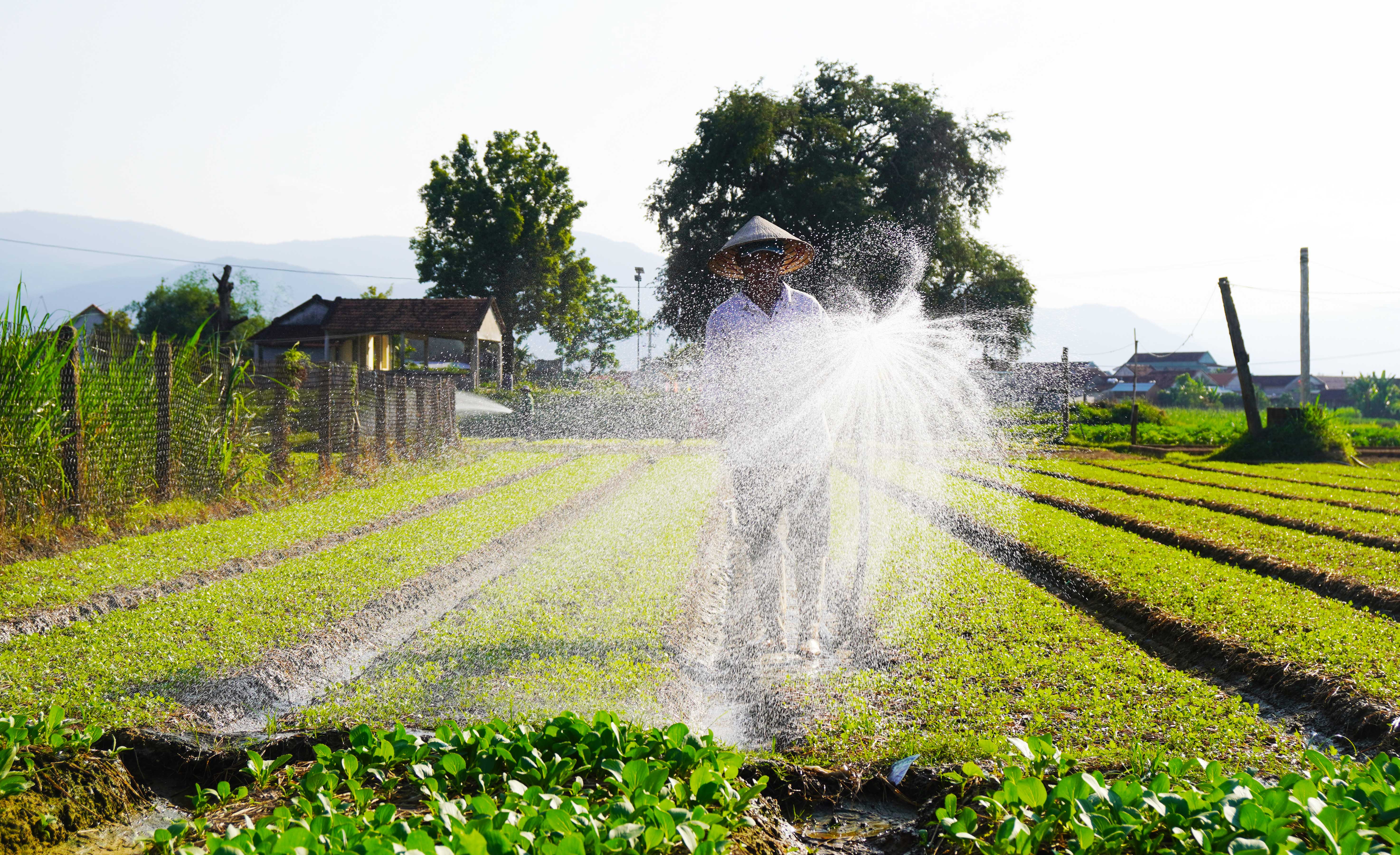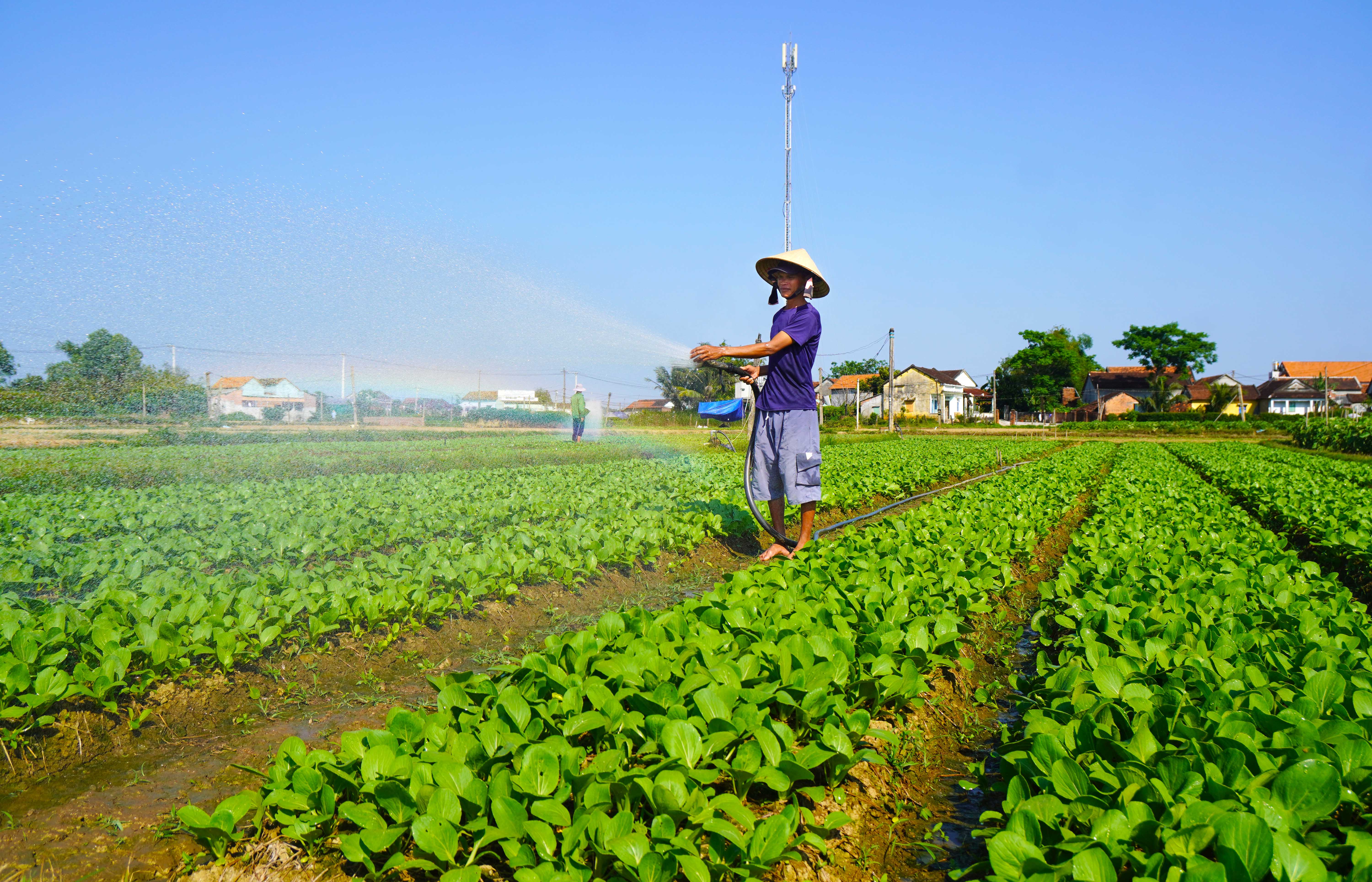 Dẫn nước từ sông Kôn tưới tiêu cho các luống rau ngò