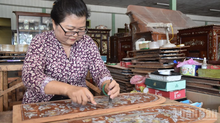 Khảm xà cừ cho tủ thờ Gò Công ở phường Sơn Qui.