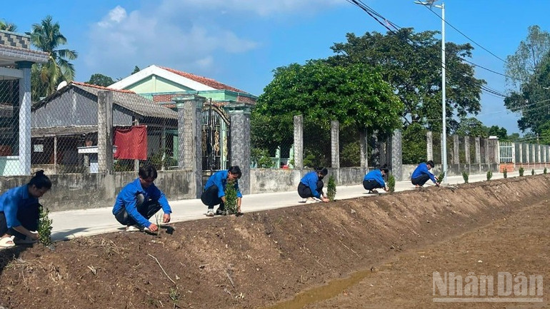 Trồng cây xanh dọc tuyến đường nông thôn ở phường Sơn Qui.