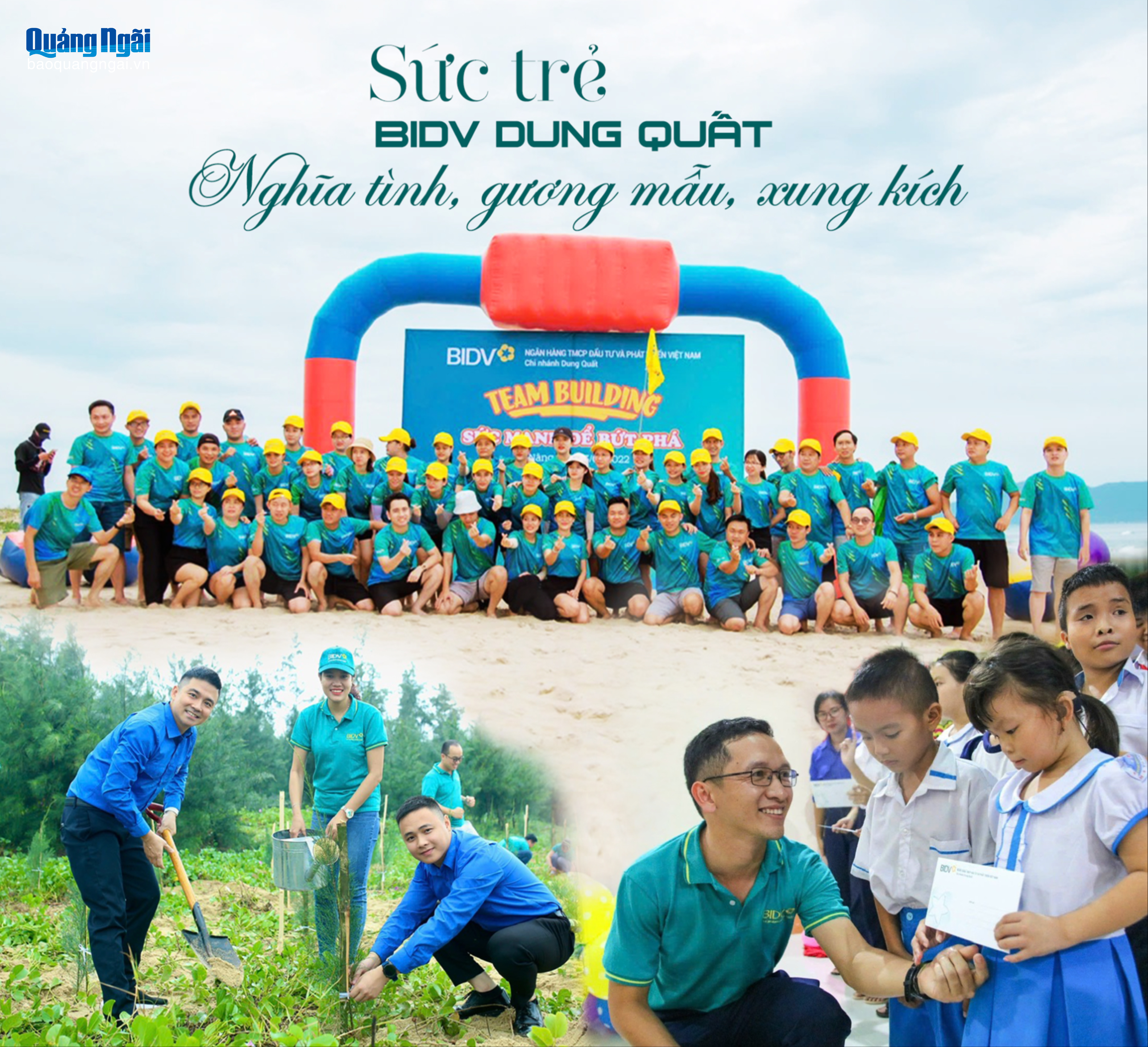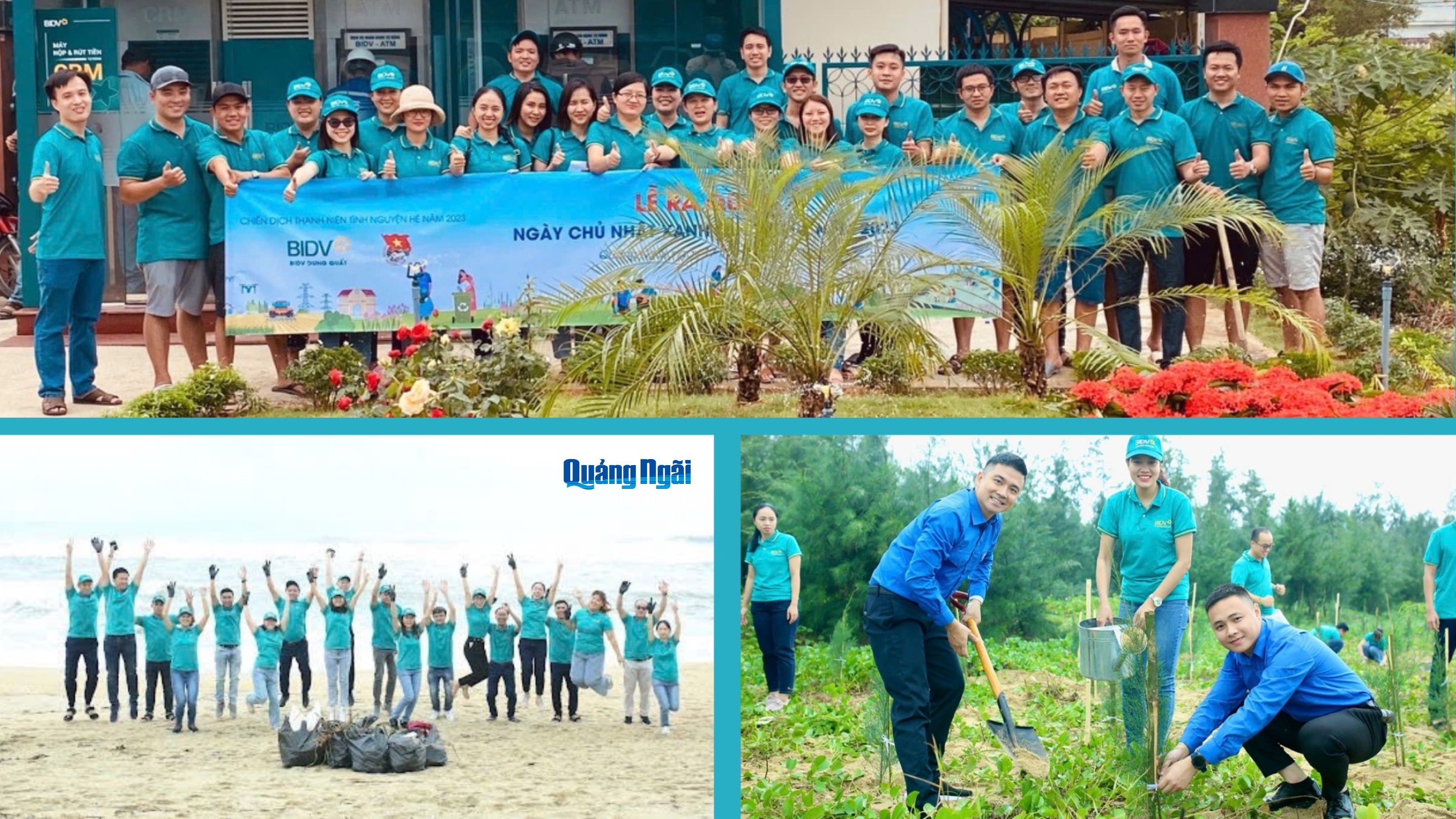 Áo xanh BIDV Dung Quất đã chung tay đồng hành dọn vệ sinh, trồng cây góp phần phủ xanh, bảo vệ môi trường, tạo cảnh quan vùng ven biển. Ngoài ra, còn nhiều hoạt động ý nghĩa như tham gia hiến máu nhân đạo Hành trình đỏ, tổ chức các chương trình trung thu cho trẻ em, tiếp sức đến trường… được đông đảo đoàn viên tích cực hưởng ứng. Các hoạt động vừa mang tính giáo dục truyền thống, vừa thể hiện tinh thần xung kích, tình nguyện vì cộng đồng của tuổi trẻ BIDV Dung Quất.