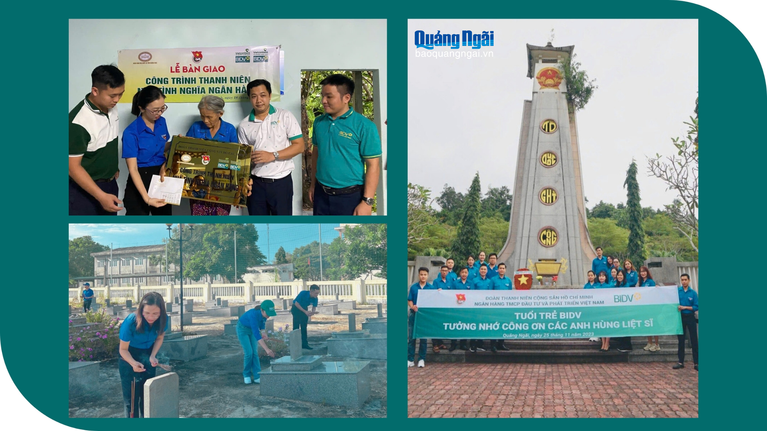 Thể hiện tấm lòng tri ân "uống nước nhớ nguồn", Đoàn cơ sở BIDV Dung Quất thường xuyên phối hợp thăm hỏi, tặng quà các gia đình chính sách, thương binh, liệt sĩ; dâng hương tại nghĩa trang liệt sĩ.