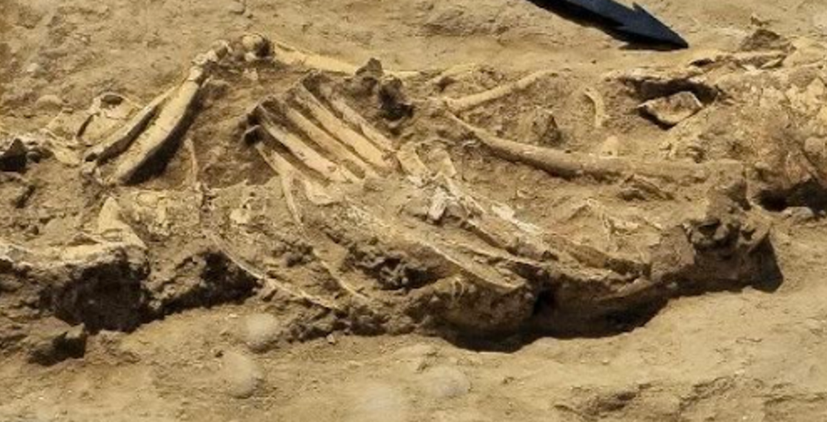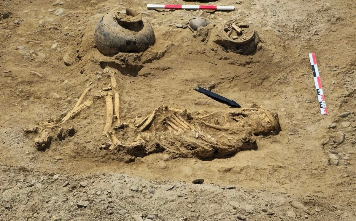 Khi khai quật, các chuyên gia tìm thấy nhiều đồ tùy táng quan trọng đi kèm với hài cốt còn nguyên vẹn của một người đàn ông trưởng thành. Tay phải của ông cầm một thanh kiếm akinak bằng đồng. Ảnh: @Bảo tàng Lịch sử Khu vực Karaganda.
