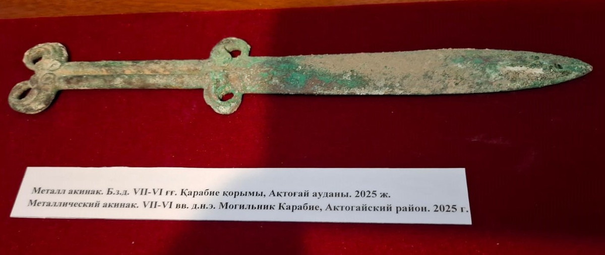 Thanh kiếm này dài khoảng 30 cm, được đúc liền khối cả cán, với một đường gân gia cố đặc biệt. Ảnh: @Bảo tàng Lịch sử Khu vực Karaganda.