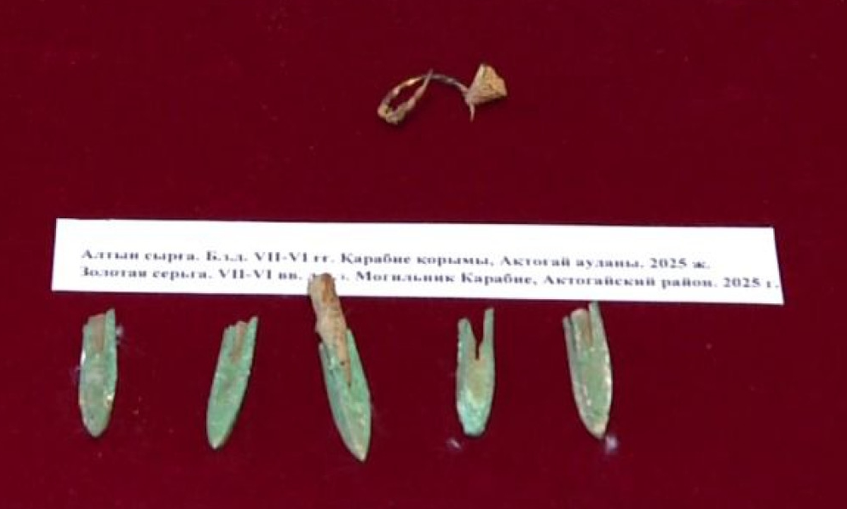 Năm đầu mũi tên bằng đồng được đặt cạnh bàn chân trái của ông. Ảnh: @Bảo tàng Lịch sử Khu vực Karaganda.