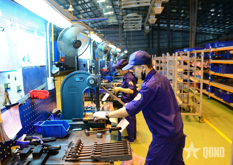 Nhà máy Z111 (Tổng cục Công nghiệp Quốc phòng) thực hiện quy trình lắp ráp súng bộ binh. Ảnh: SƠN BÌNH