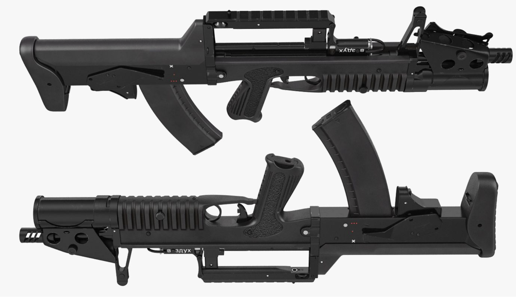 Một điểm thiết kế đáng chú ý khác là cơ chế đẩy vỏ đạn về phía trước - vỏ đã bắn được đưa ra phía trước súng thay vì bên hông người bắn - điều này vừa thuận tiện cho người bắn thuận hai tay vừa tránh nguy cơ vỏ nóng va vào mặt trong các tư thế bất thường, hữu ích khi tác chiến trong trang bị lặn.