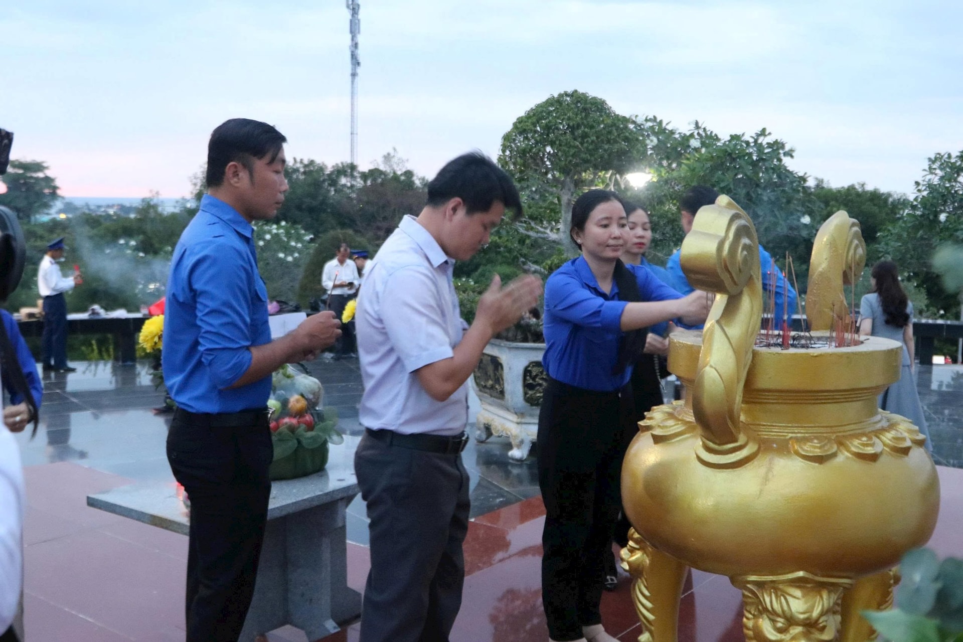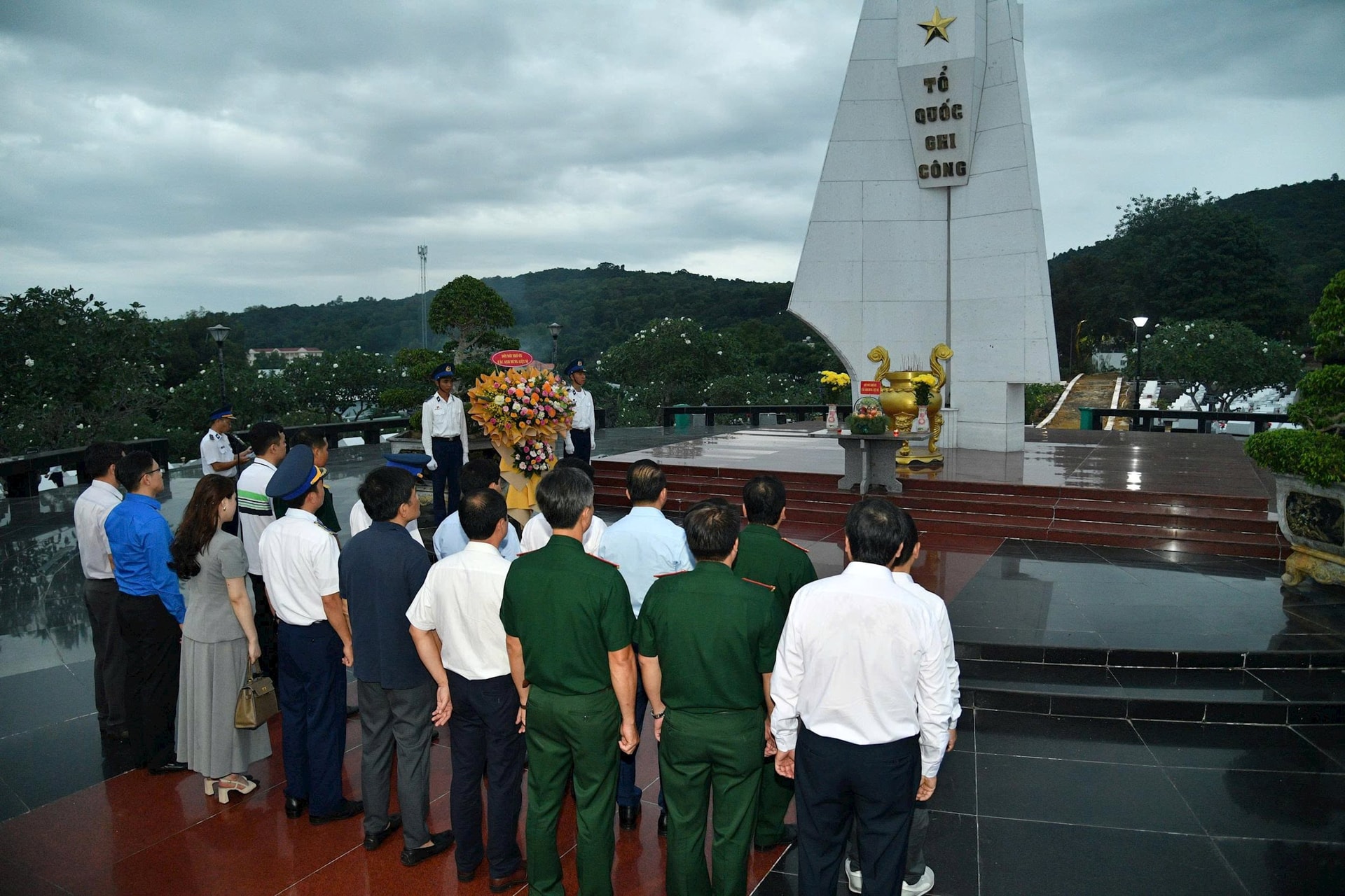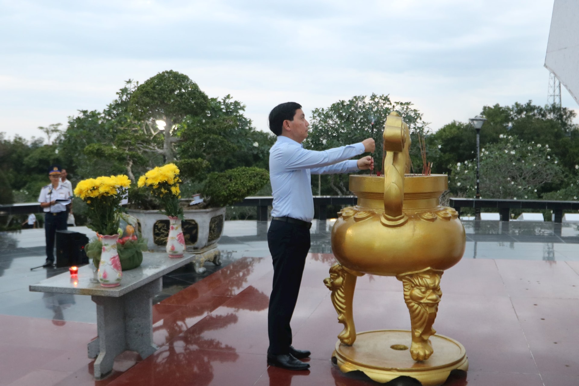 Tiếp đó, đoàn công tác đã tới dâng hương, dâng hoa, thắp nến tri ân tại Nghĩa trang Liệt sĩ Phú Quốc, nơi yên nghỉ của gần 3.300 liệt sĩ.
