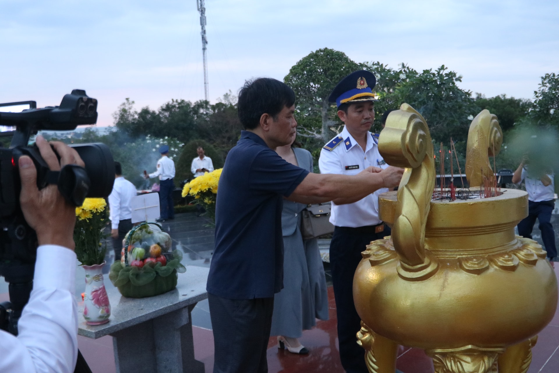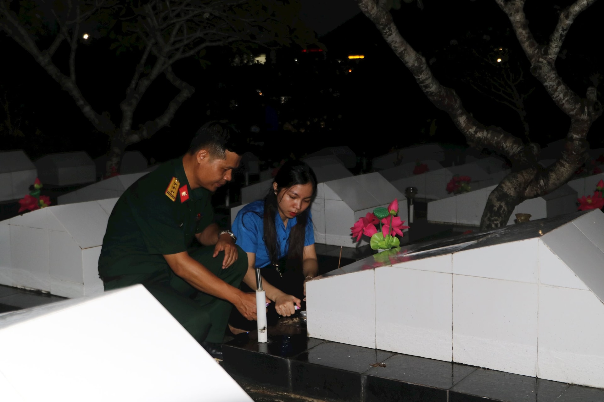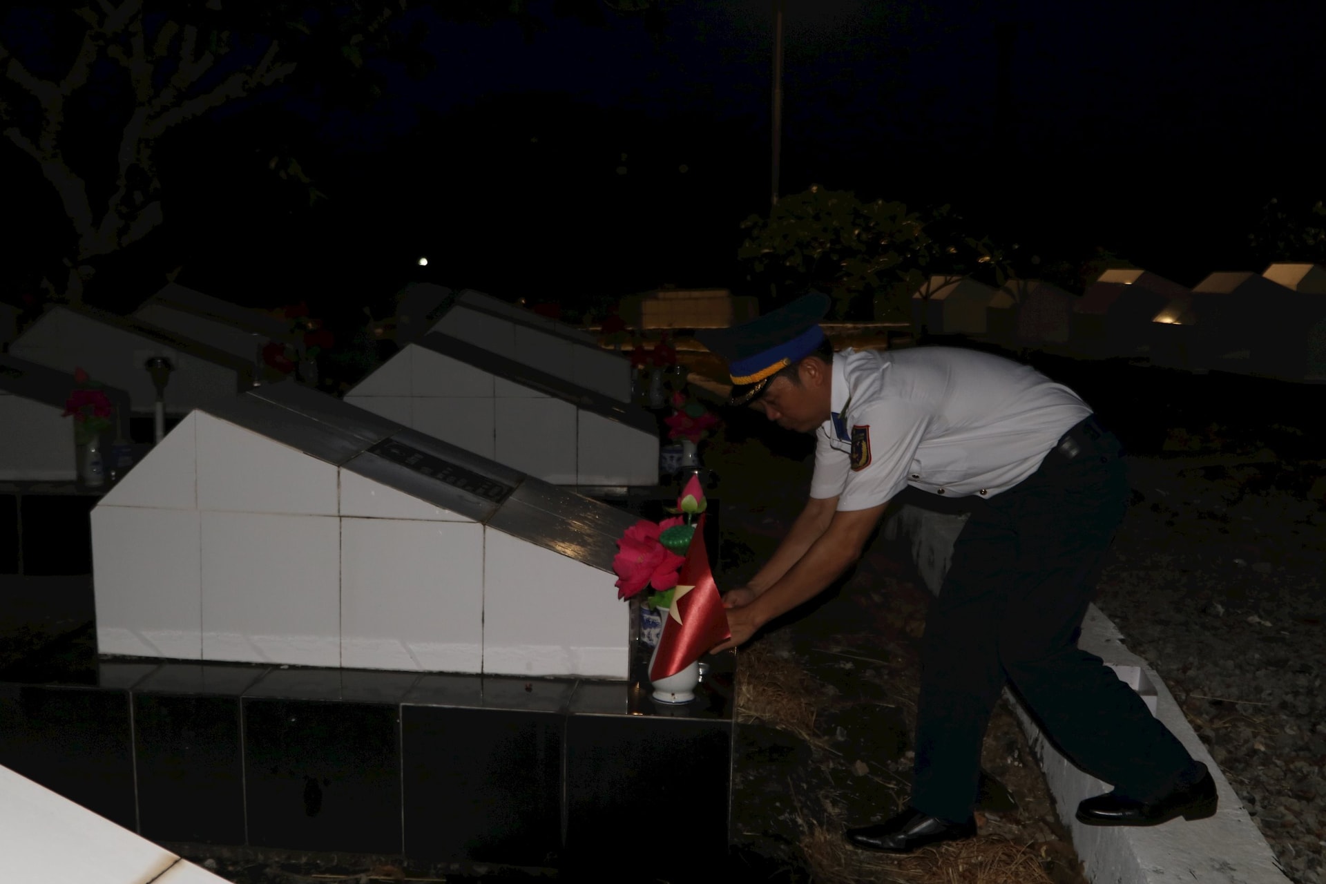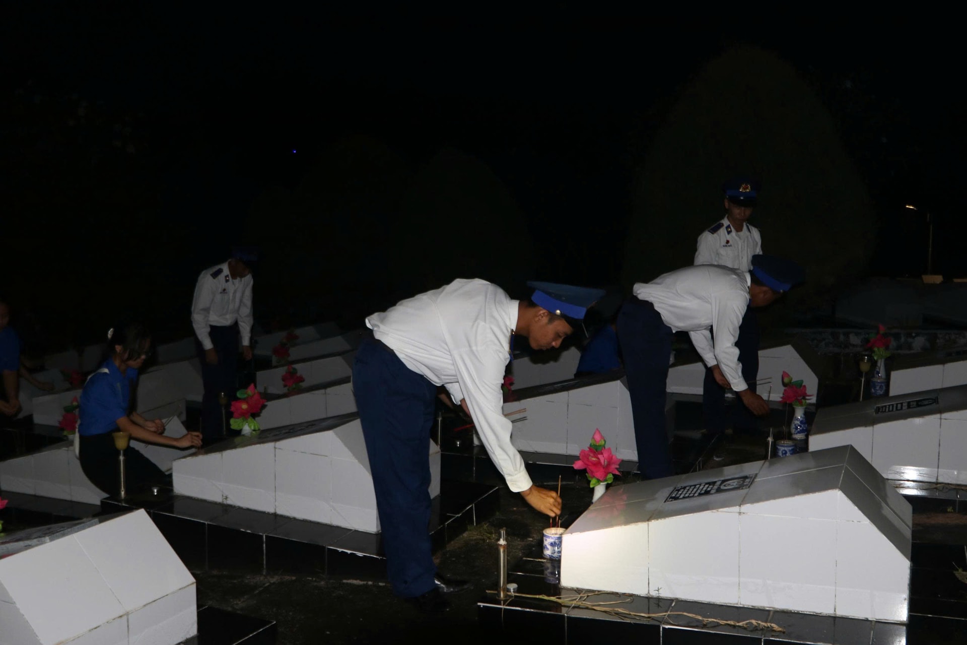 Đại tá Nguyễn Thái Dương, Ủy viên BTV Đảng ủy, Phó Chính ủy BTL Vùng Cảnh sát biển 4 thắp nến tri ân các liệt sĩ