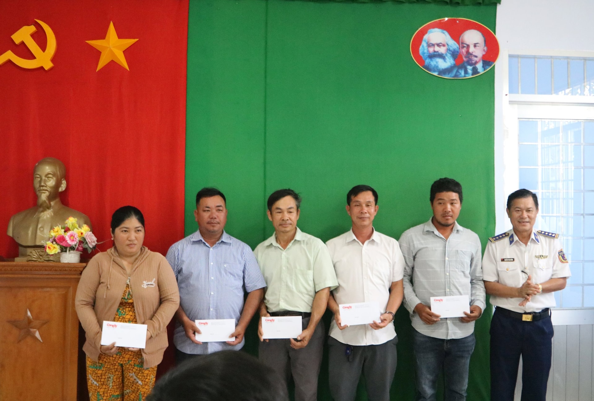 Đại tá Nguyễn Thái Dương, Ủy viên BTV Đảng ủy, Phó Chính ủy BTL Vùng Cảnh sát biển 4 trao quà cho hộ dân có hoàn cảnh khó khăn