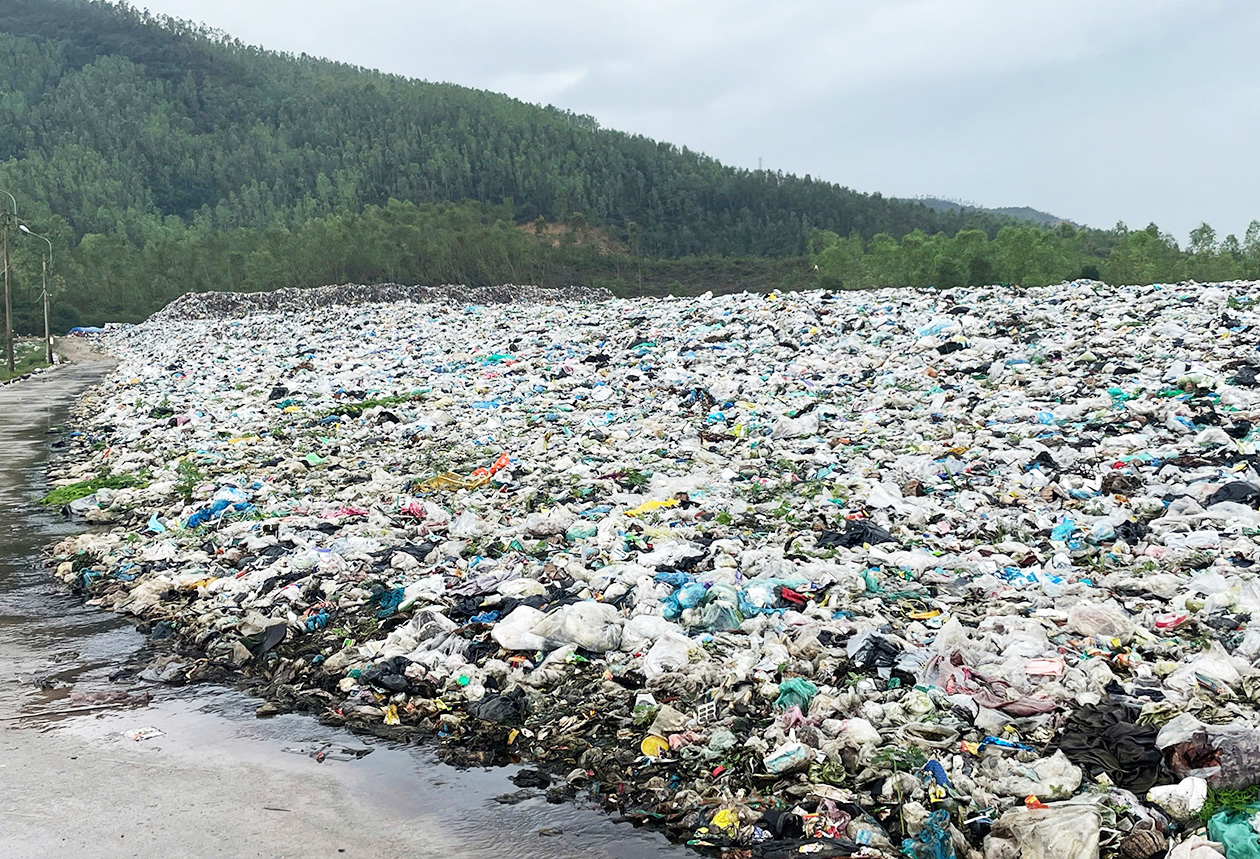 Khu vực bãi chôn lấp chất thải rắn Tây Sơn (xã Tây Sơn, Gia Lai) đầy rác thải, nước rỉ rác liên tục chảy ra ngoài