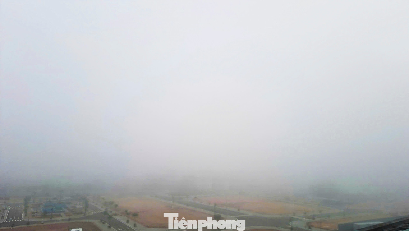 Sương mù trắng xóa bao phủ cả một vùng. Ảnh: Trương Định.