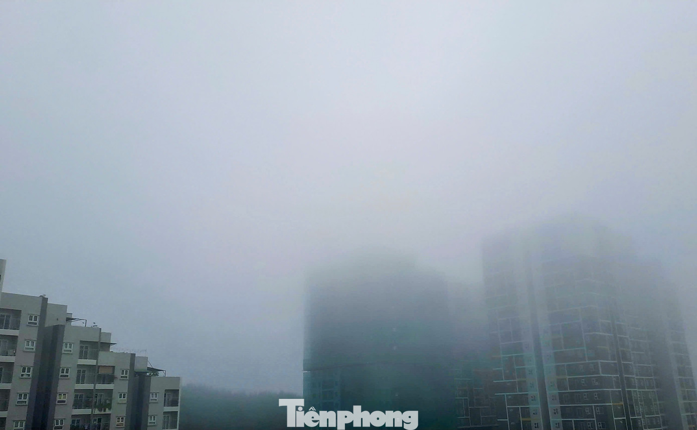 Theo ghi nhận của Tiền Phong, ngay từ sáng sớm sương mù bắt đầu bao phủ, dày nhất vào khung giờ từ 5-7h, sau đó bắt đầu dần tan.