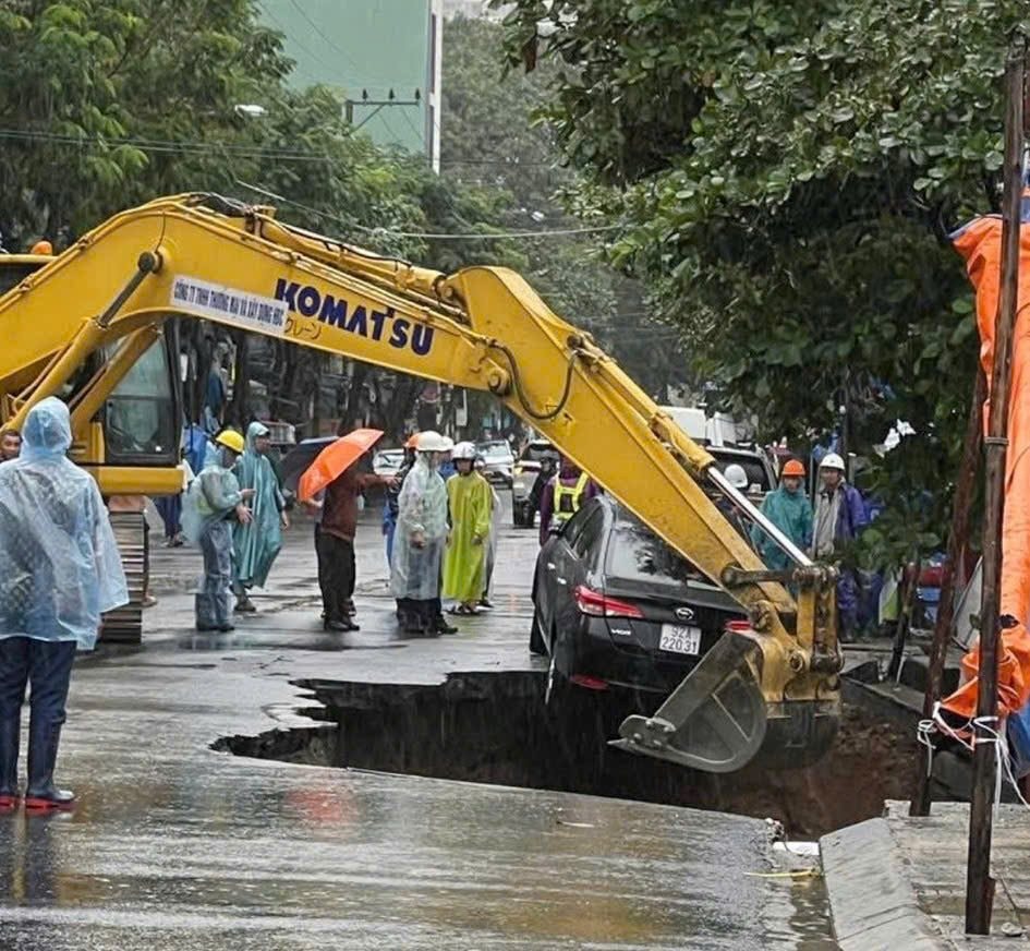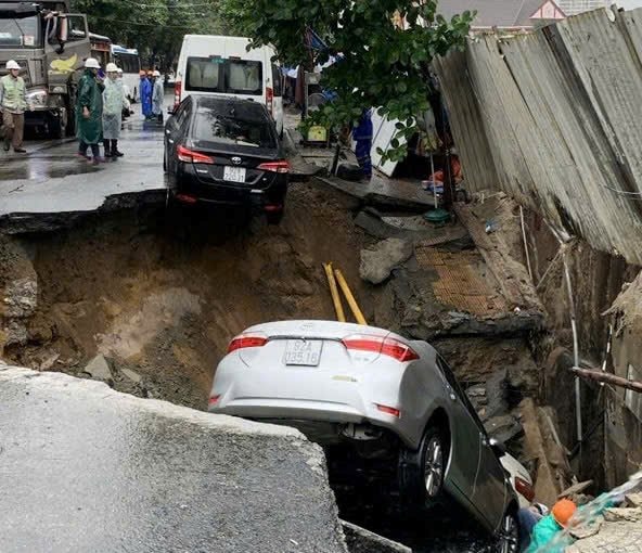 Tại thời điểm xảy ra sự cố, 2 ô tô đỗ sát lề đường bị rơi xuống hố; một ô tô khác bị trượt dọc miệng hố và mắc kẹt tại vị trí tiếp giáp mặt đường. Khu vực được lực lượng chức năng phong tỏa ngay sau đó để bảo đảm an toàn cho người và phương tiện.