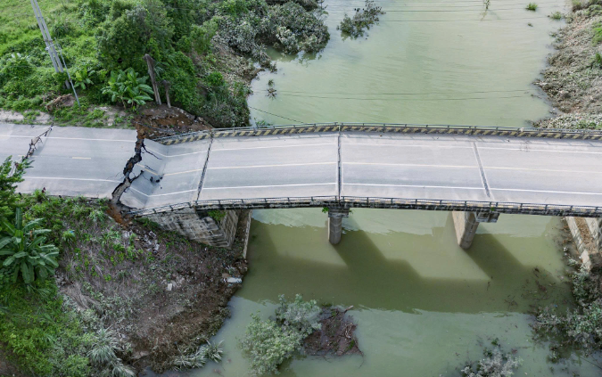 Vị trí bị sụt sâu khoảng 2m so với vị trí ban đầu. Đây là sụt lún đường dẫn lên cầu chứ không phải sập cầu. Rất may thời điểm xảy ra sự việc không có người lưu thông qua lại nên không gây thiệt hại về người.