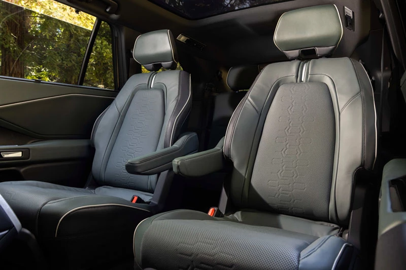 Không gian nội thất của Subaru Getaway được thiết kế rộng rãi với ba hàng ghế, mang lại sự linh hoạt cao. Người dùng có thể lựa chọn cấu hình ghế 2-3-2 hoặc 2-2-2 tùy theo nhu cầu sử dụng. Hàng ghế thứ hai hỗ trợ gập một chạm giúp dễ dàng tiếp cận hàng ghế thứ ba, trong khi Subaru khẳng định người cao khoảng 1,8 m vẫn có thể ngồi thoải mái ở cả ba hàng ghế.