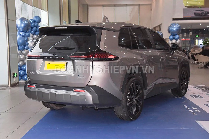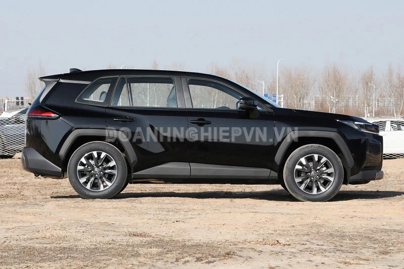 Thiết kế thân xe nổi bật với đường viền eo khỏe khoắn, mang lại cảm giác năng động, kết hợp ốp vòm bánh xe màu đen nhấn mạnh phong cách SUV và khả năng đi đường sá phức tạp. Kích thước tổng thể của Toyota RAV4 2026 lần lượt là 4.620x1.855x1.680mm, chiều dài cơ sở 2.690 mm mang lại không gian nội thất rộng rãi. Ở phía sau, dải ốp màu đen nối liền cụm đèn hậu sử dụng nguồn sáng ma trận điểm, giúp tăng khả năng nhận diện khi di chuyển ban đêm.