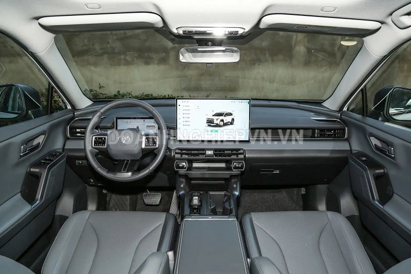 Bước vào khoang cabin, Toyota RAV4 2026 sử dụng nhiều vật liệu mềm cao cấp, được phát triển riêng cho thị trường Trung Quốc, với hai tùy chọn màu nội thất đen toàn bộ hoặc đen - trắng. Bảng điều khiển trung tâm thiết kế uốn cong hiện đại, kết hợp đèn viền nội thất 256 màu tạo không gian cao cấp.