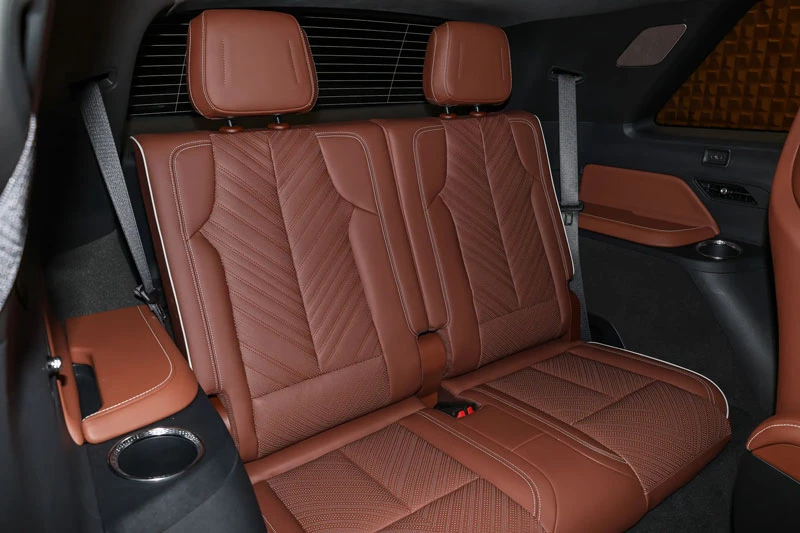 Những đường gân dập nổi chạy dọc thân xe kết hợp vòm bánh xe sơn đen tăng vẻ cơ bắp, trong khi các phiên bản cao cấp sử dụng mâm 22 inch đi kèm kẹp phanh Brembo 6 piston, nhấn mạnh chất thể thao. Xe có kích thước tổng thể 5.222x2.026x1.799 mm và trục cơ sở 3.094 mm, đảm bảo không gian nội thất rộng rãi cho cả ba hàng ghế.