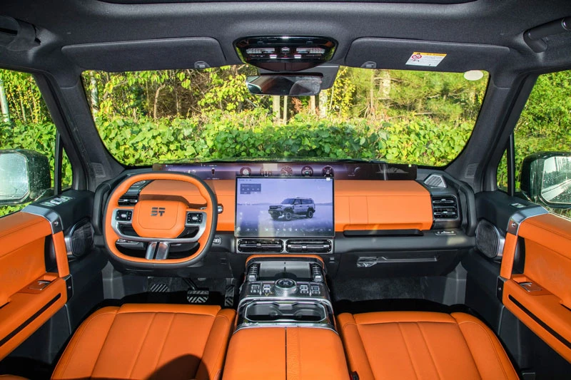 Khoang cabin của Jetour Zongheng G700 2026 thể hiện sự sang trọng đúng chuẩn SUV cao cấp với vật liệu da bọc cao cấp, các chi tiết mạ chrome sáng bóng và phong cách thiết kế vuông vức đồng bộ với ngoại thất. Trung tâm bảng điều khiển là màn hình cảm ứng 15,6 inch, kết hợp màn hình hiển thị Skyline 35,4 inch kéo dài toàn bảng táp-lô, mang lại cảm giác hiện đại và đậm chất công nghệ.