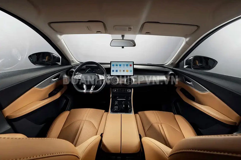 Không gian nội thất của Xinghai T5 được thiết kế theo phong cách hiện đại và hướng tới trải nghiệm số hóa. Xe được trang bị cụm đồng hồ kỹ thuật số hoàn toàn, kết hợp vô lăng ba chấu đa chức năng. Trung tâm bảng táp-lô là màn hình cảm ứng giải trí kích thước 13 inch dạng nổi, hỗ trợ đa phương tiện và các tính năng kết nối thông minh. Bảng điều khiển trung tâm có thiết kế dạng bậc thang, nhấn nhá bằng các chi tiết ốp màu bạc, trong khi hệ thống cửa gió điều hòa tròn đặt ở hai bên và trung tâm mang đến điểm nhấn cá nhân hóa cho khoang lái.