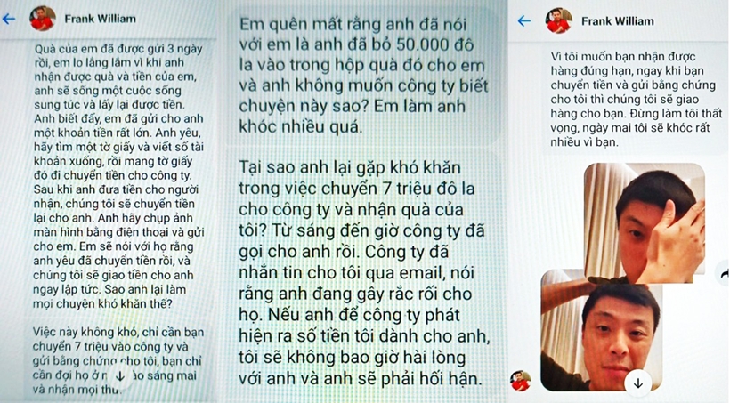 Chị T. trình bày, vài ngày trước đó, qua mạng xã hội, chị có quen biết một người đàn ông tự giới thiệu là phi công người Anh, có nickname là “Frank Wiliam”.