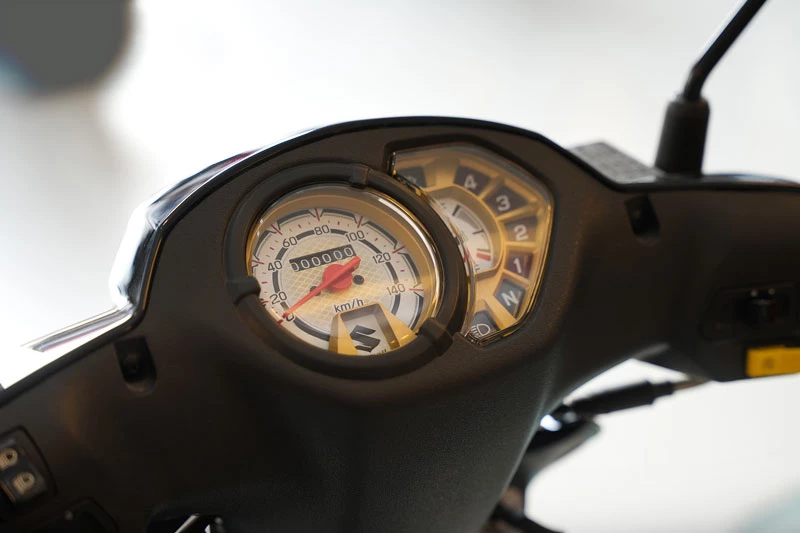Cặp đèn xi nhan kích thước lớn đặt hai bên mặt nạ trước, tạo hình như “đôi mắt”, góp phần tăng thêm cá tính cho tổng thể. Bảng đồng hồ dạng analog to bản, hiển thị rõ ràng các thông tin như tốc độ, mức nhiên liệu và quãng đường đã đi, mang lại sự thuận tiện cho người lái.