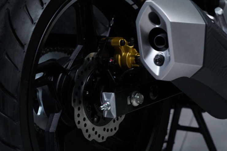 SYM VFE185i sử dụng bộ mâm kích thước 17 inch, đi kèm với lốp 90/80 ở phía trước và 120/80 ở phía sau. Xe có chiều cao yên 800 mm, bình xăng dung tích 7 lít và trọng lượng khô là 135 kg, phù hợp với nhiều đối tượng người dùng, kể cả người mới làm quen với xe côn tay.