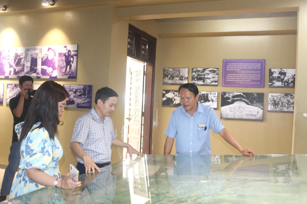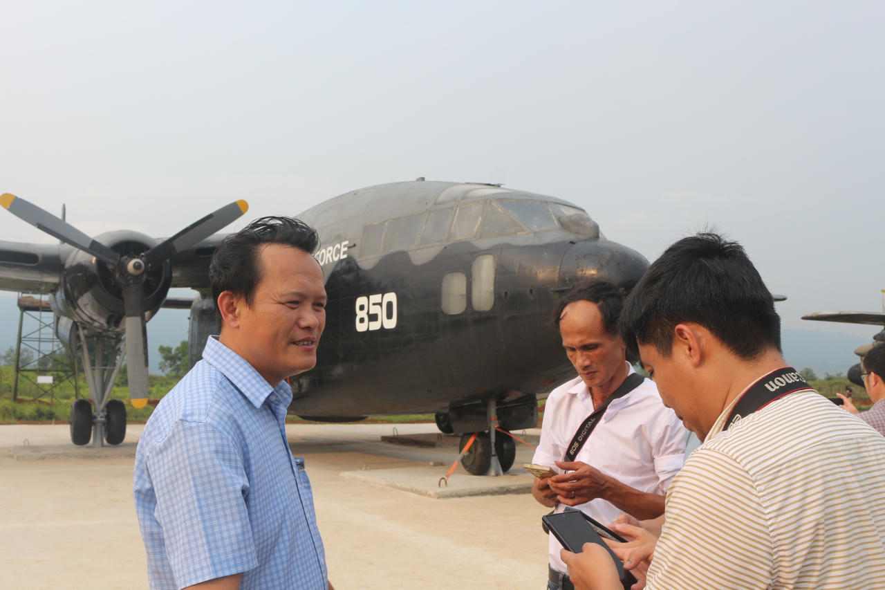 Ông Nguyễn Viết Minh, Phó Trưởng Ban quản lý Di tích Sân bay Tà Cơn trao đổi, giới thiệu về các hiện vật lịch sử tại khu di tích.