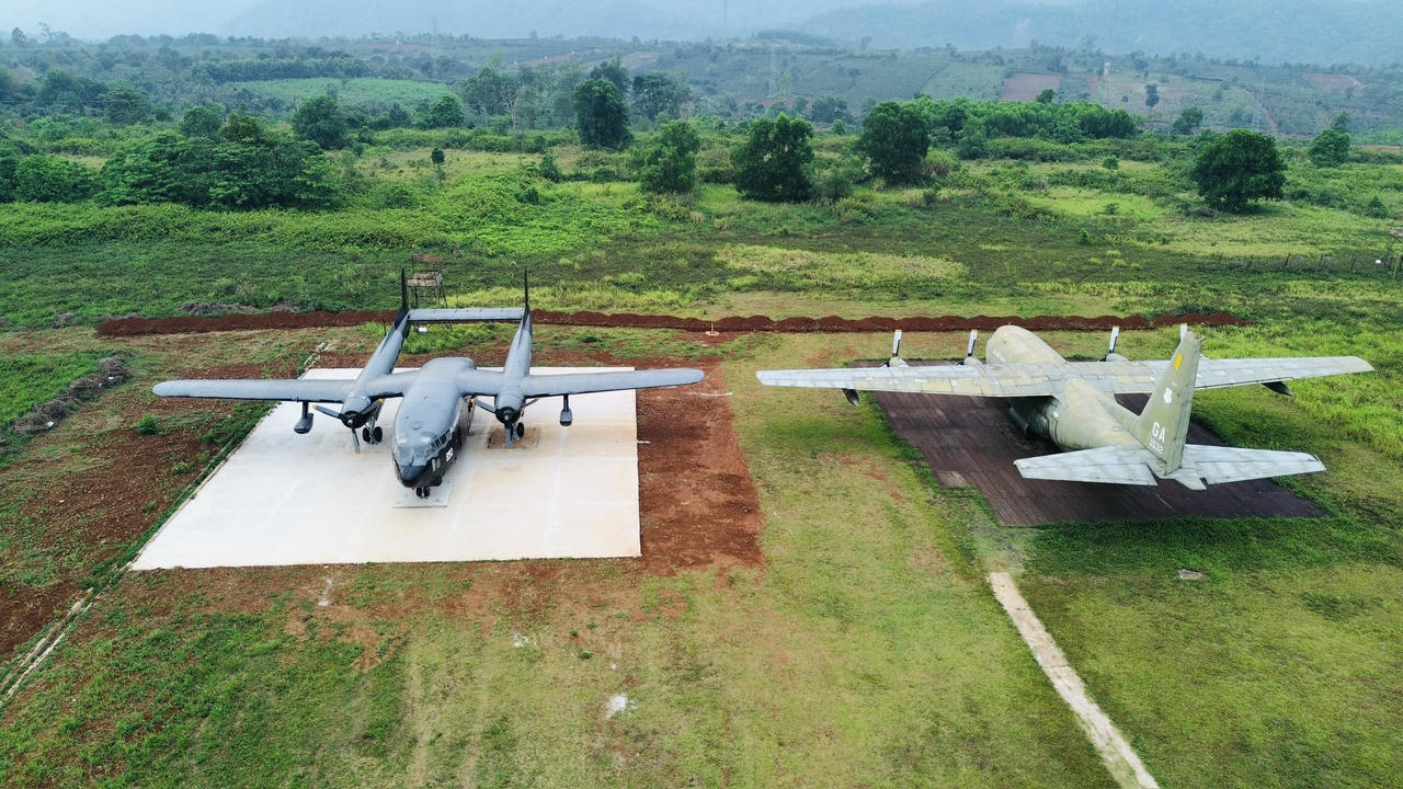 Di tích Sân bay Tà Cơn nhìn từ trên cao, dấu tích lịch sử vẫn hiện hữu giữa màu xanh hòa bình. (Ảnh Trần Long)