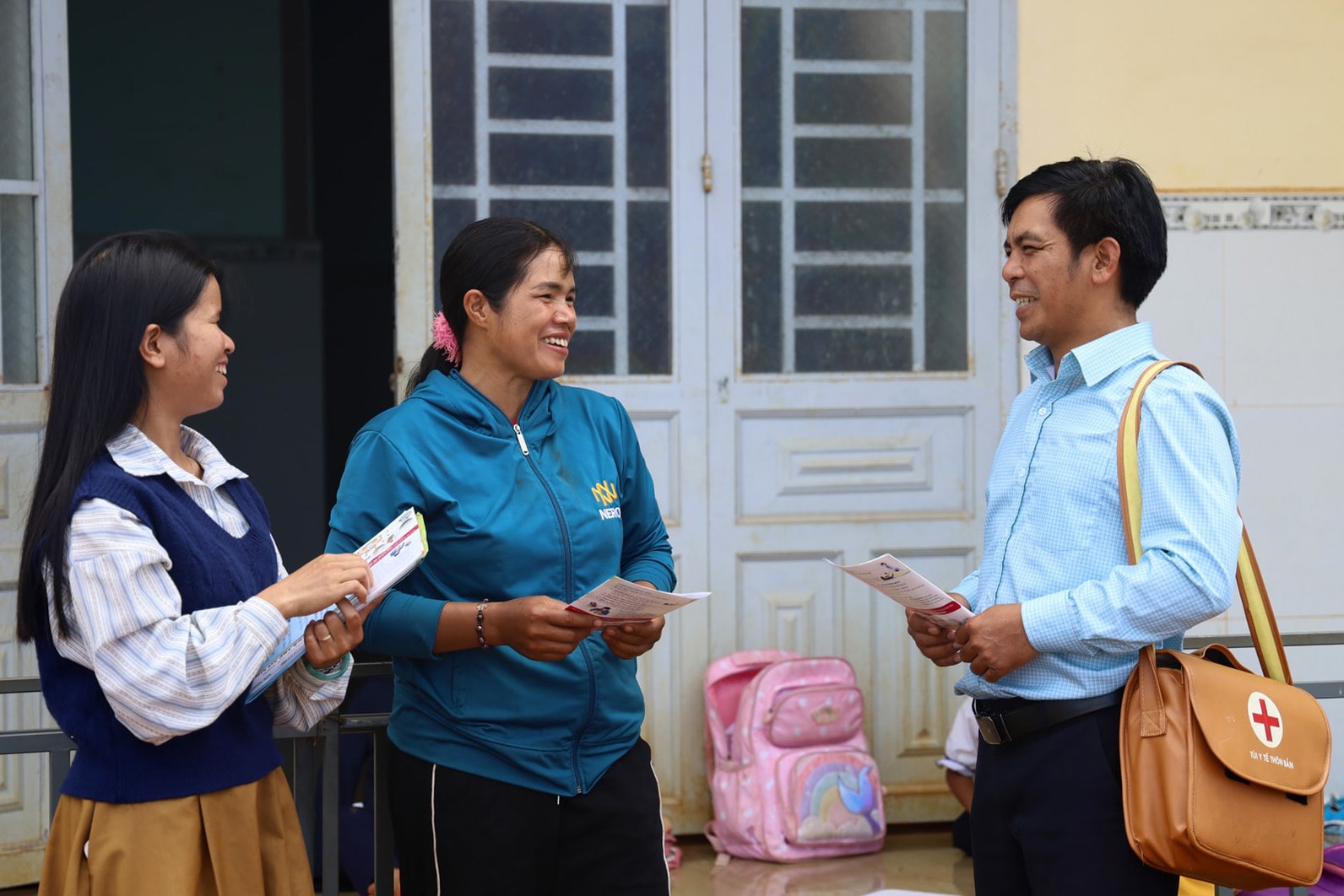 Cán bộ y tế xã tuyên truyền để nâng cao nhận thức của người dân về chăm sóc sức khỏe