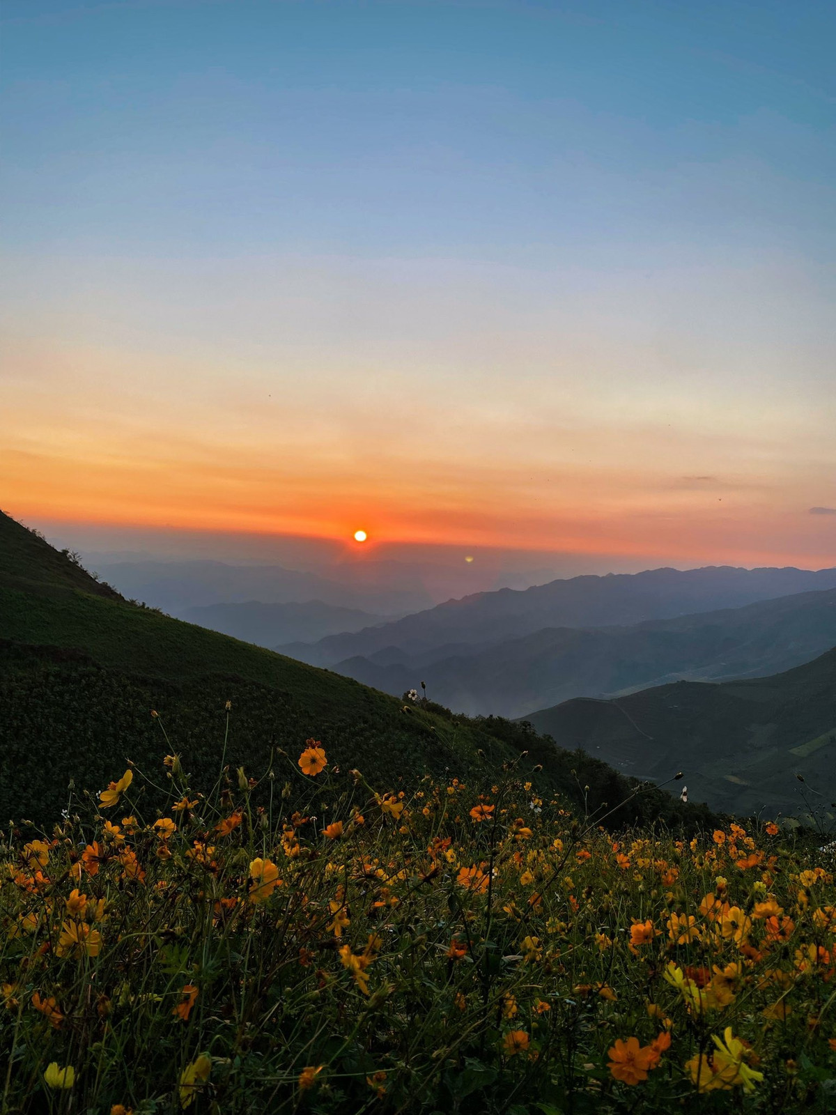 Giữa nhịp sống hối hả, Tà Xùa như một chốn trú ẩn yên bình, nơi con người được sống chậm lại, được ngắm nhìn vẻ đẹp thuần khiết của thiên nhiên – nơi hoàng hôn buông xuống, trên nền cỏ hoa, khiến ai cũng ngỡ mình đang lạc vào giấc mơ. Ảnh Diệp Hữu Đạt